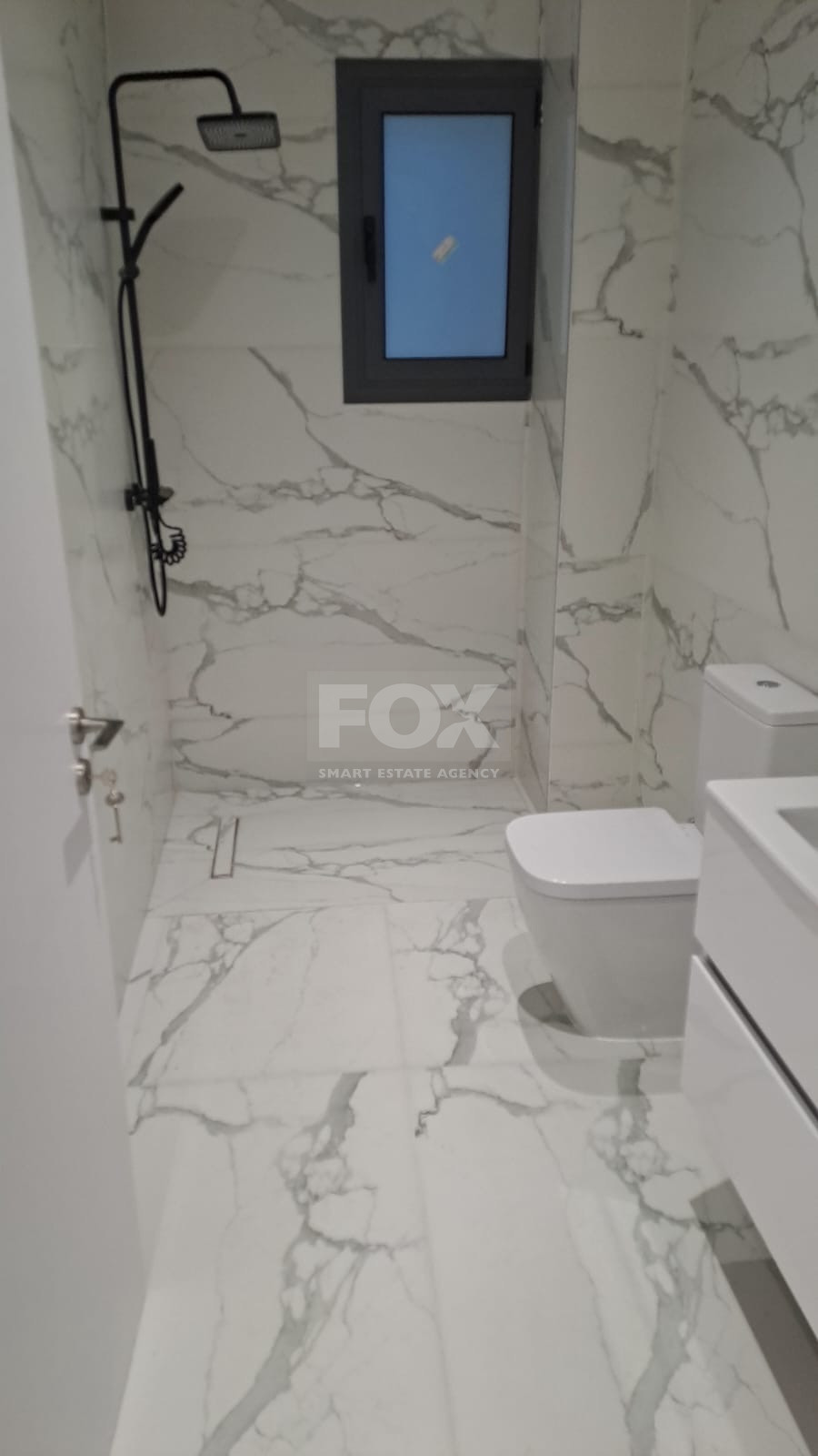 Premium Flooring: Large-format marble-effect tiles creating a spacious, unified look.