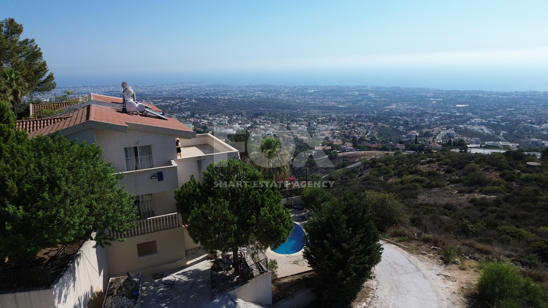 From every level of the villa, residents can enjoy uninterrupted views across Paphos town and the Mediterranean Sea. Expansive verandas, shaded terraces, and a private swimming pool are framed by mature landscaped gardens, creating the perfect setting for both relaxation and entertaining.