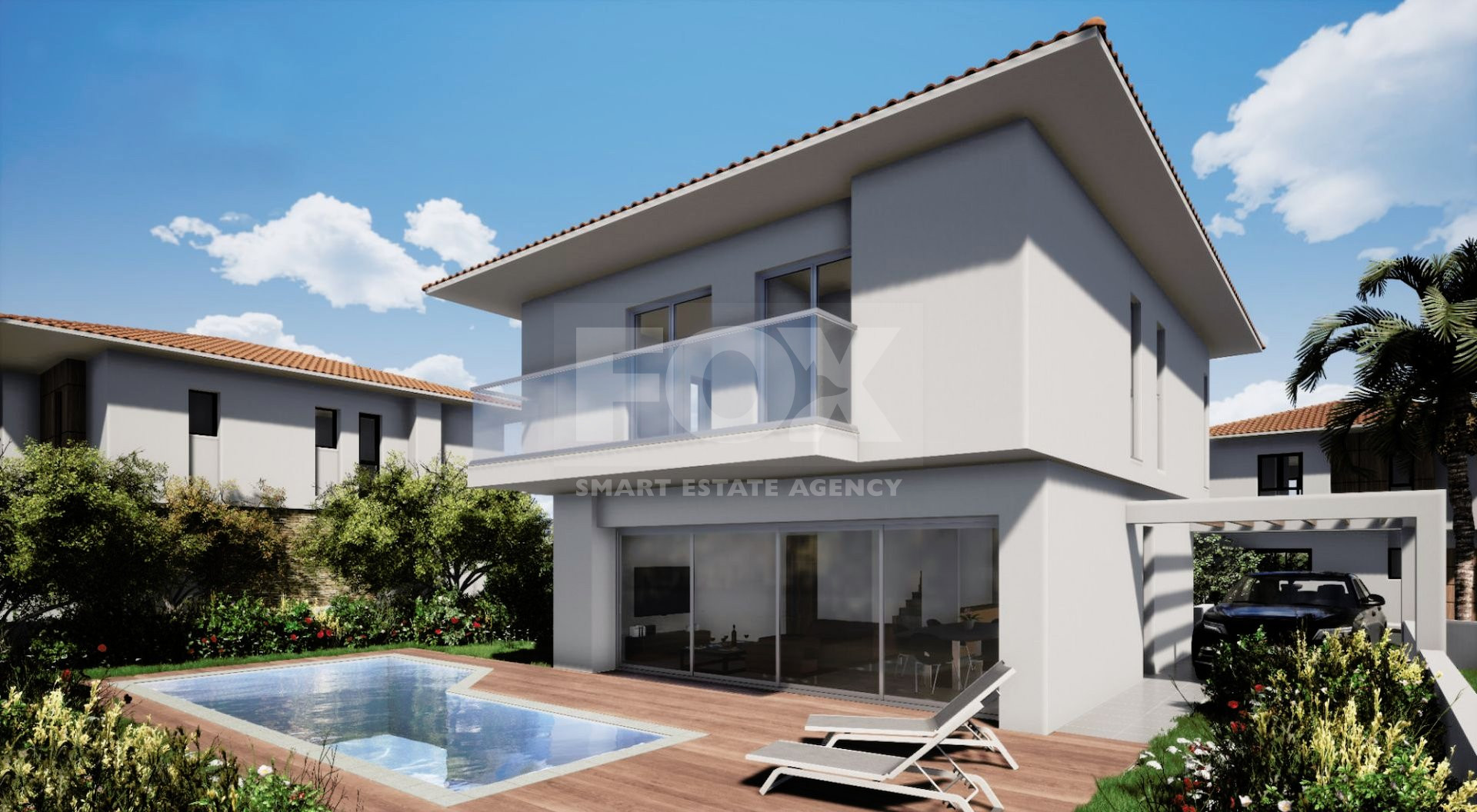 The Villa showcases a sleek, modern aesthetic with open-plan living spaces and kitchens featuring elegant granite worktops. Each bedroom includes fitted wardrobes, with the master bedroom offering the convenience of en-suite facilities. Outside, a private garden provides a peaceful retreat for relaxation and outdoor enjoyment.