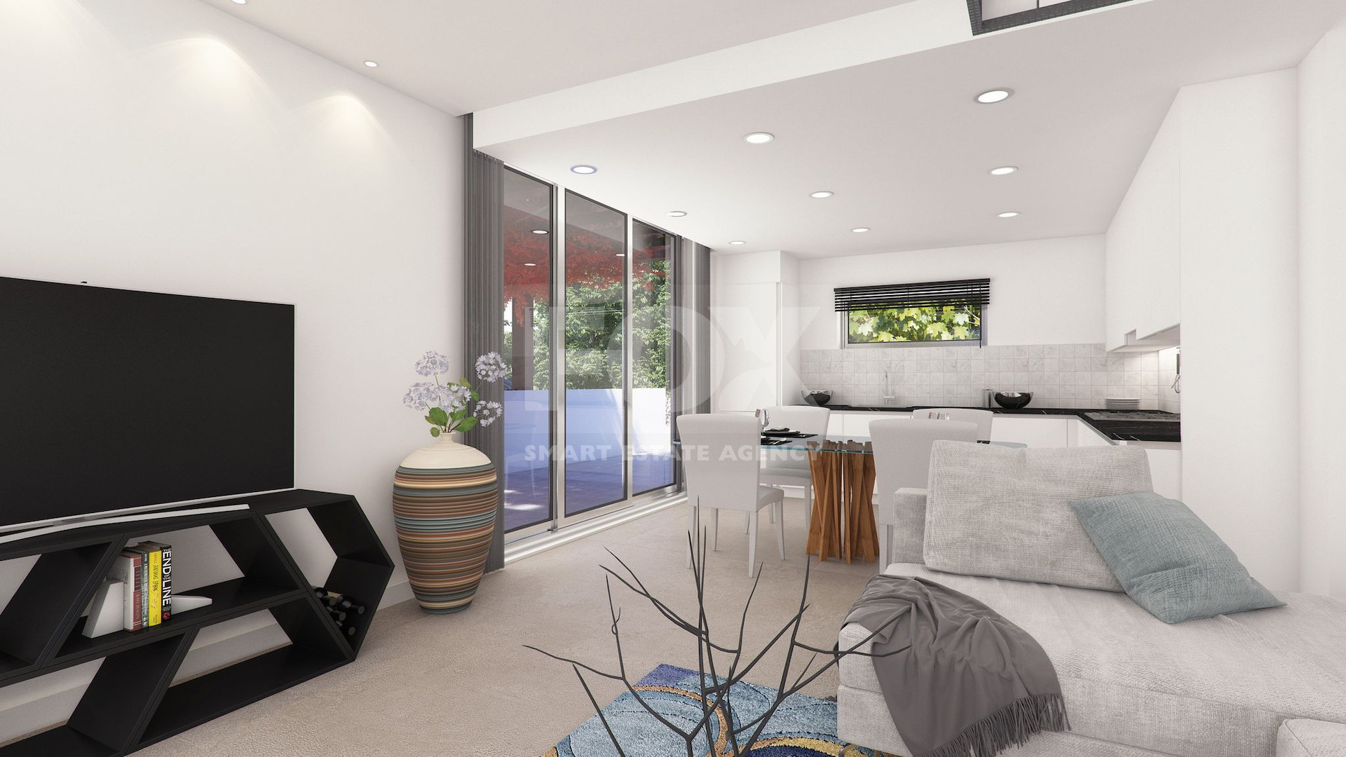 The ground floor welcomes you into a bright and spacious open-plan living room, dining area, and modern kitchen, designed to maximise natural light and functionality. Large double-glazed ultra lift-and-slide windows and veranda doors connect the interior seamlessly with the outdoor areas, enhancing the sense of space and flow.