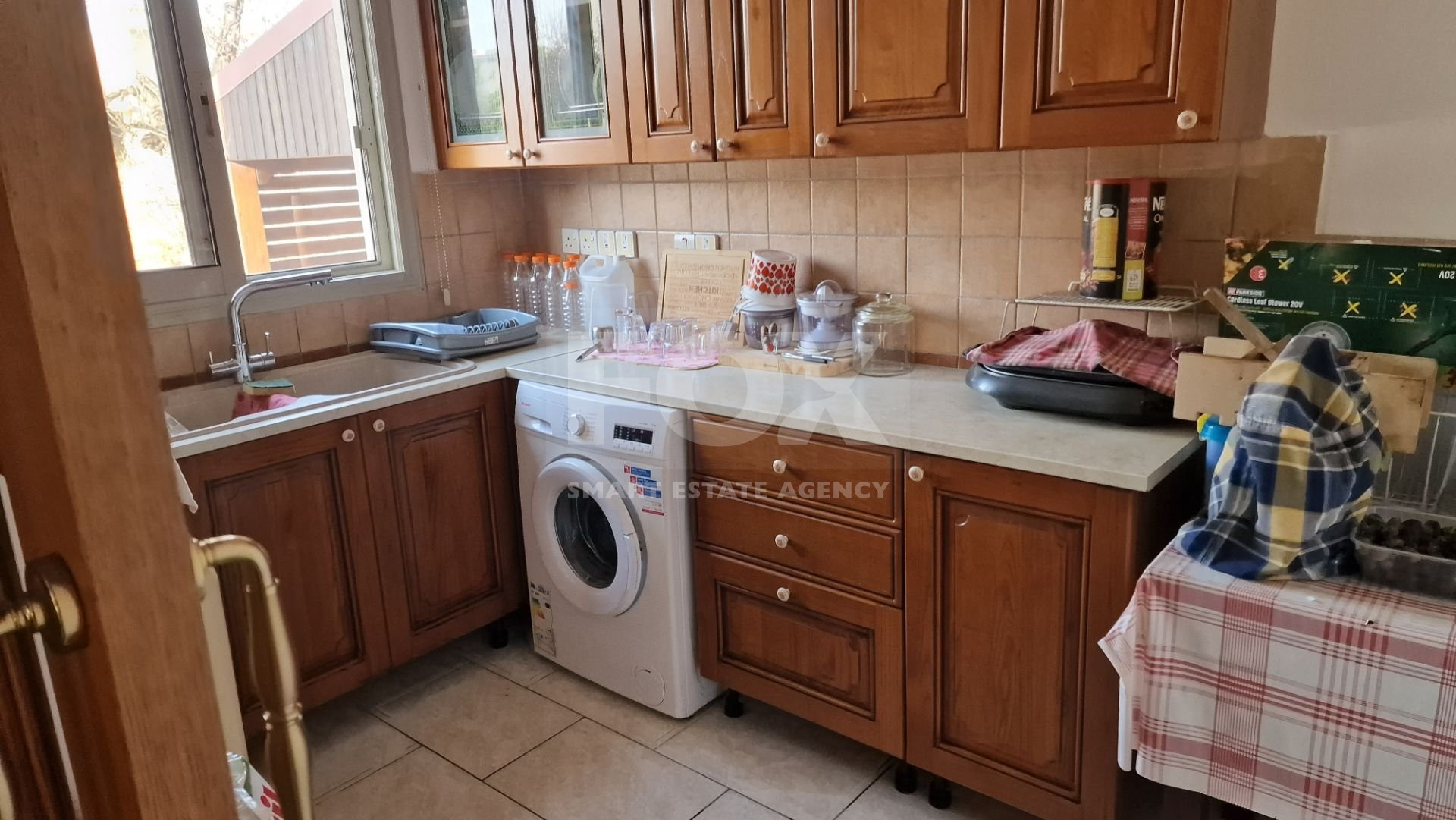 There is a large living room, a separate kitchen which includes a laundry room and kitchenette and a guset toilet on the ground floor.