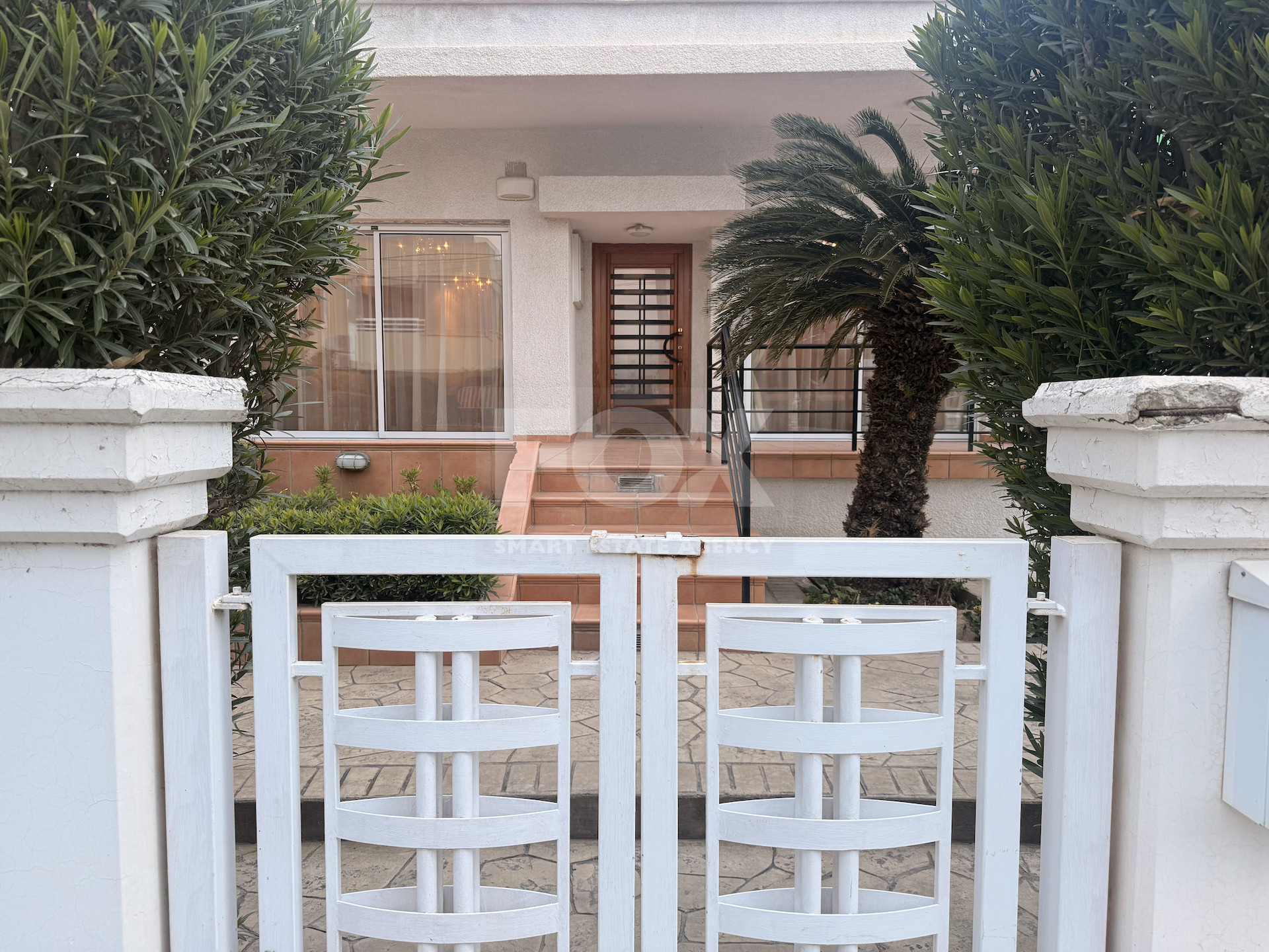 The home includes a separate maid’s quarters, a laundry room, and a guest WC. A short staircase of 4–5 steps leads to the upper level, where you will find three well-sized bedrooms with patio doors opening onto private balconies.