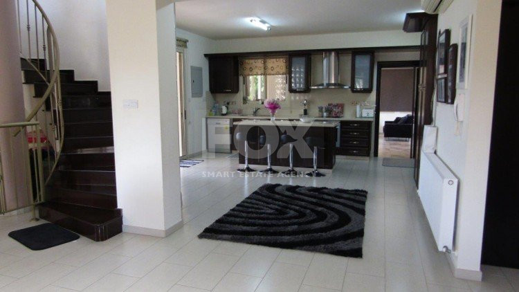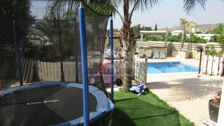 Lovely house available fully furnished in the quiet village of Pyrgos. Just 7 minutes driving distance from the highway and close to the village centre. Ideal for a family with children. The ground level has two sitting areas, dining area and open plan kitchen with guest WC leading to the cozy outdoor seating area with private swimming pool, garden area, children's play area and barbecue. Three spacious bedrooms are on the first floor of which the master bedroom has en-suite facilities and walk in wardrobe and bedrooms two and three share a family bathroom. A beautiful home which has to be seen to be appreciated. Please call for further information.