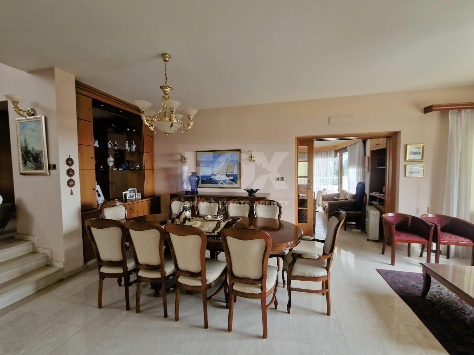 Furthermore, the villa includes a 215sq.m. enclosed basement serving as a one-bedroom apartment, complete with an extra office room. Currently rented at 1500 EUR per month, this additional space presents a lucrative investment opportunity or supplementary income stream.