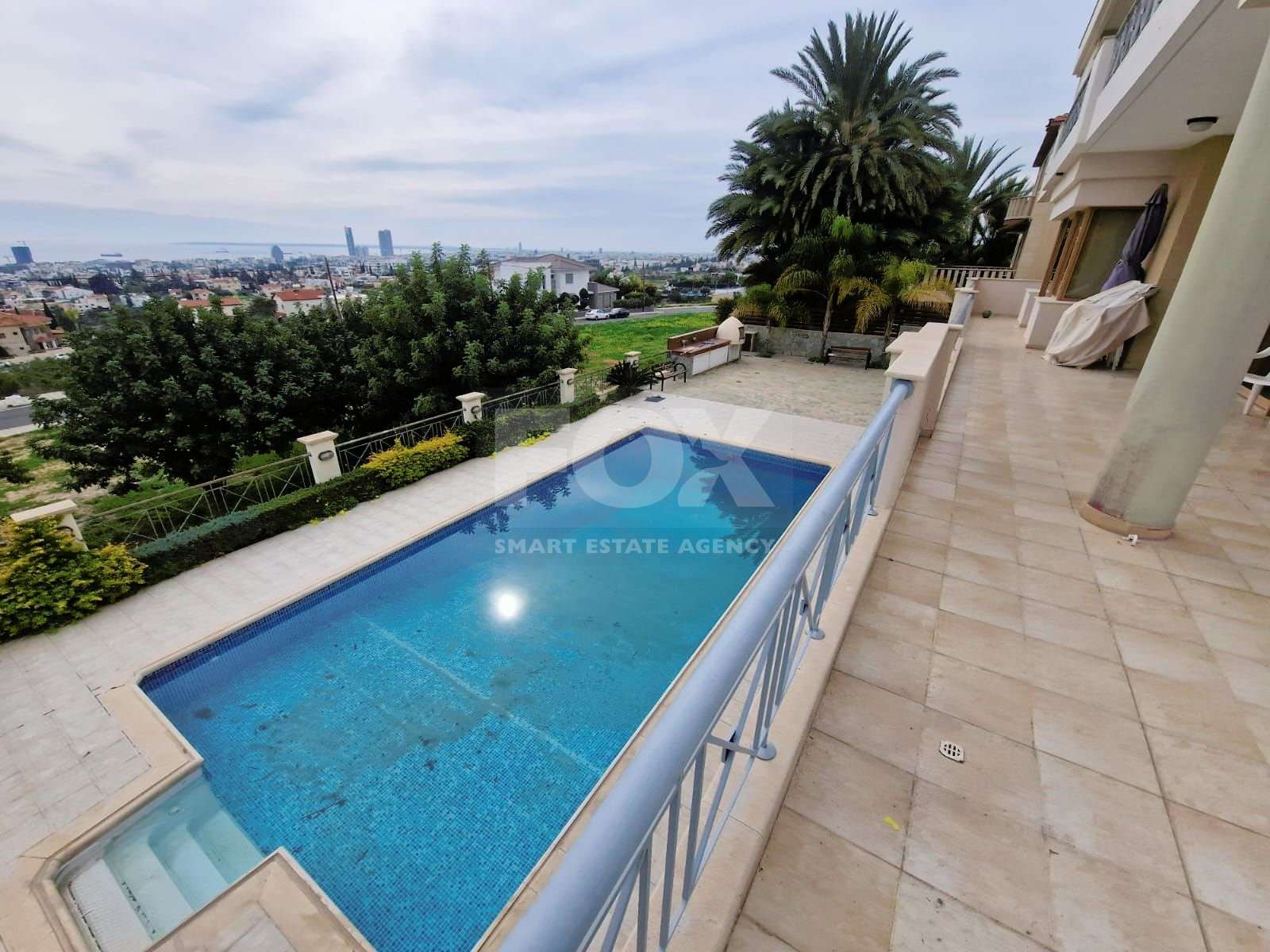 Outside, the villa features a sparkling swimming pool with panoramic vistas of the city and sea, ideal for relaxation and outdoor gatherings. The expansive garden offers plenty of space for leisure activities and peaceful moments. For convenience, a double garage provides secure parking for vehicles.