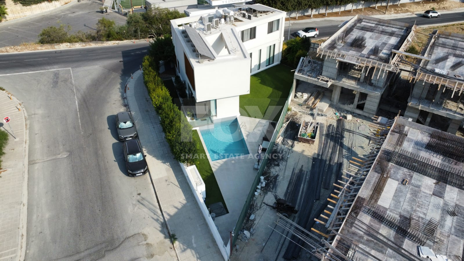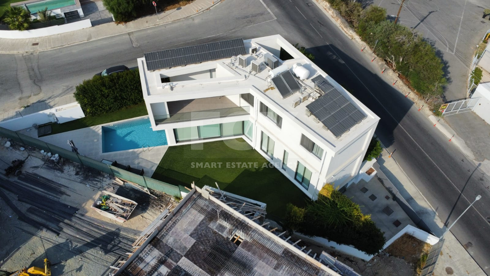 Situated on a 499 sq.m. corner plot, this villa combines modern design with comfort and practicality. The impressive architecture features high ceilings, a spacious living room with floor-to-ceiling windows, and abundant natural light throughout. The ground floor offers an open-plan layout with a large kitchen, dining area, guest toilet, and a secondary living room ideal as a playroom or home office.