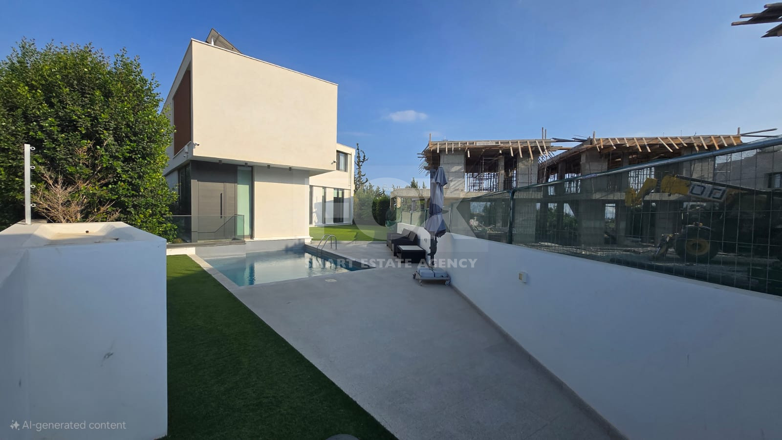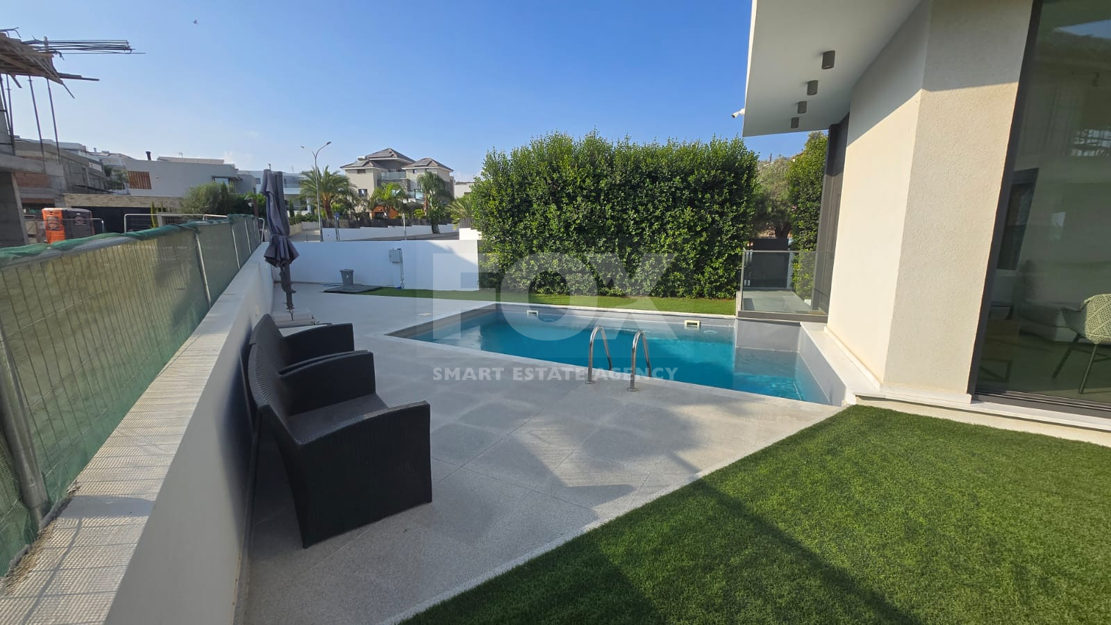 Outdoors, the villa is surrounded by landscaped gardens, while the other half of the plot is dedicated to a spacious yard with a private swimming pool, offering the perfect space for relaxation and entertaining.