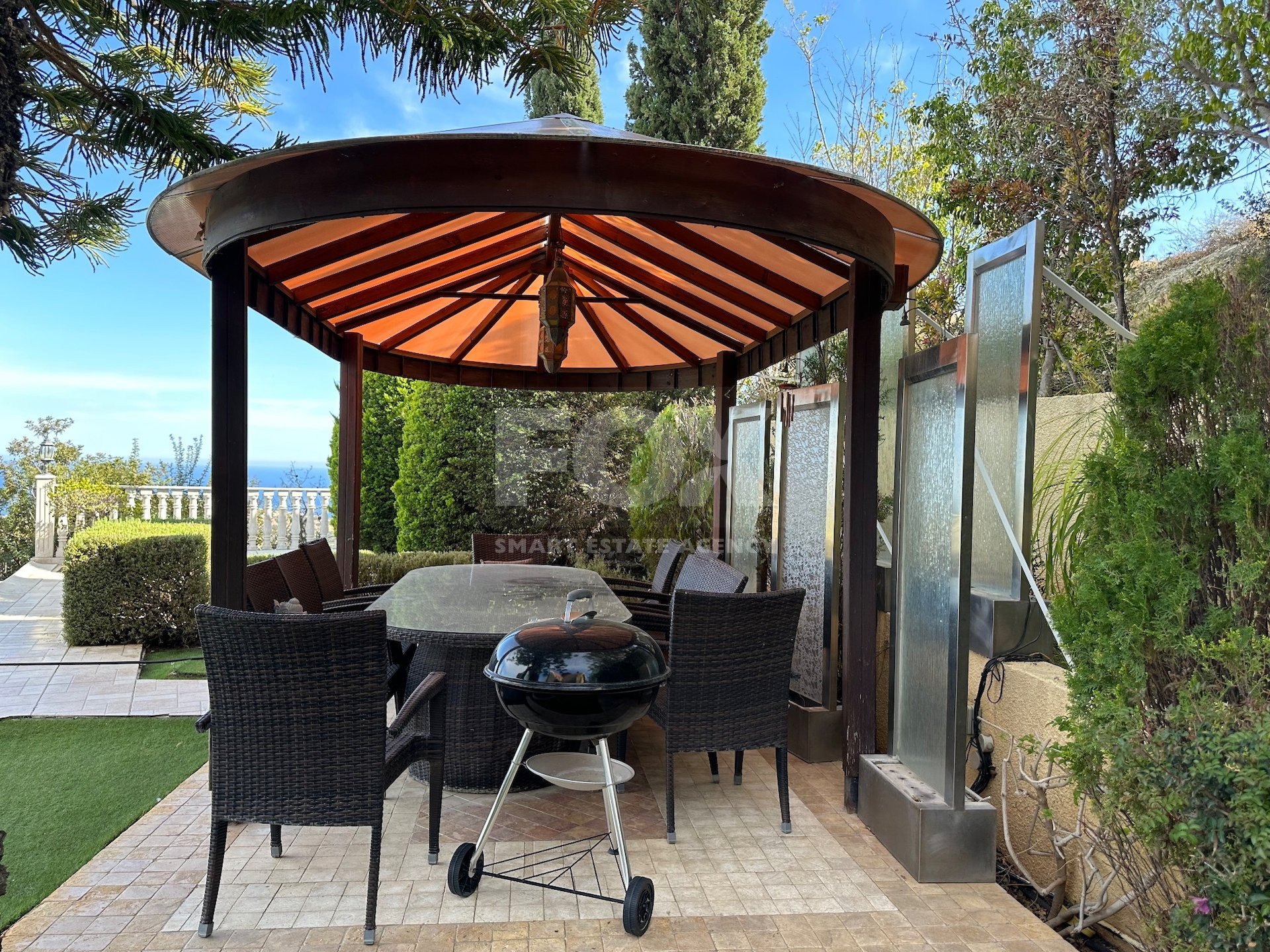 The villa benefits from comforts including geothermal heating, a VRV air-conditioning system, and mature landscaped gardens that enhance the natural beauty of the surroundings. While some modernization is required, the property's rare land size and premium location with completely unobstructed sea views, make it a truly valuable find with enormous potential.