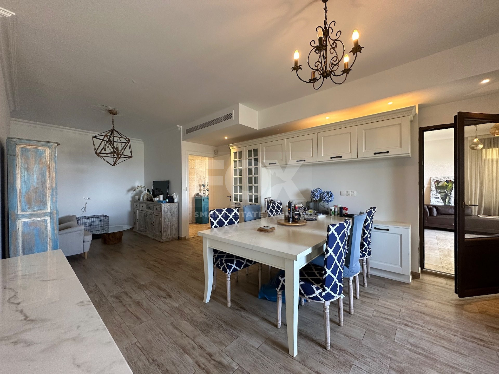 Set on a generous 1,351sqm plot in the prestigious area of Agios Tychonas, this delightful villa offers stunning panoramic sea views and exceptional potential. Designed with both comfort and functionality in mind, the home features an inviting entrance hall, a spacious living and dining area with direct access to the rear garden, a cozy TV room, and a fully-equipped separate kitchen with breakfast/dining space. Additional ground floor amenities include a laundry room, guest WC, a private office, and three bedrooms—all with en suite facilities, ideal for family living or guest accommodation.