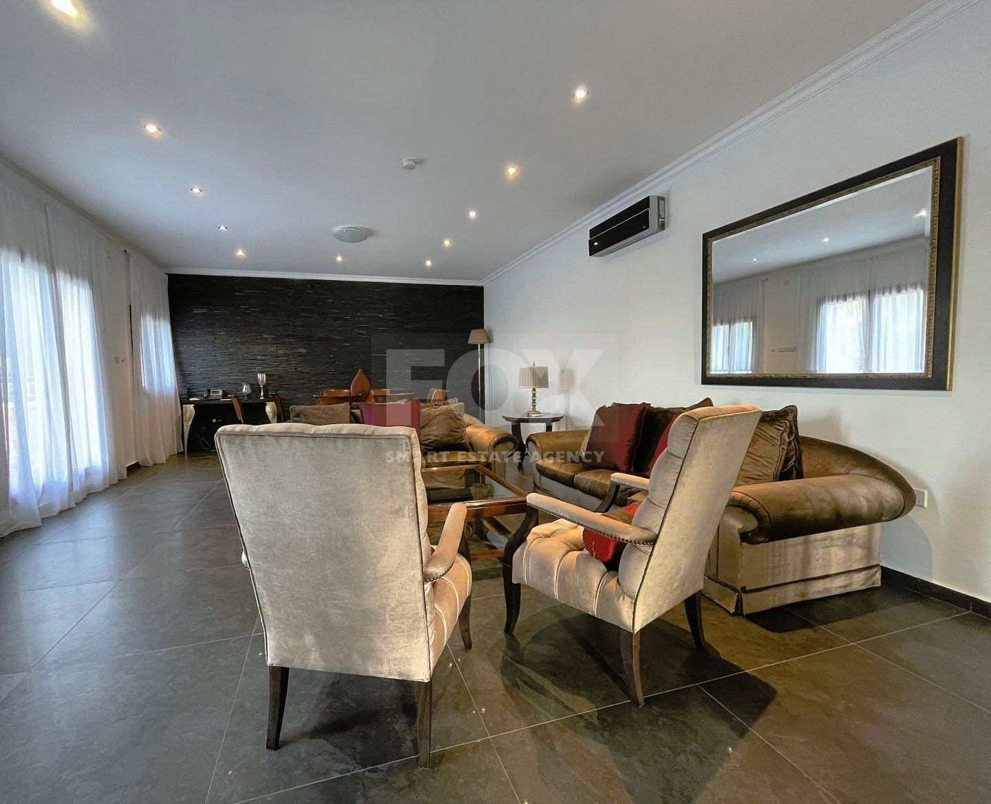 Spread across two well-planned levels, the villa features a seamless open-plan design that connects the bright living and dining areas. The fully equipped main kitchen is complemented by an auxiliary kitchen, ensuring maximum functionality and convenience for everyday living.