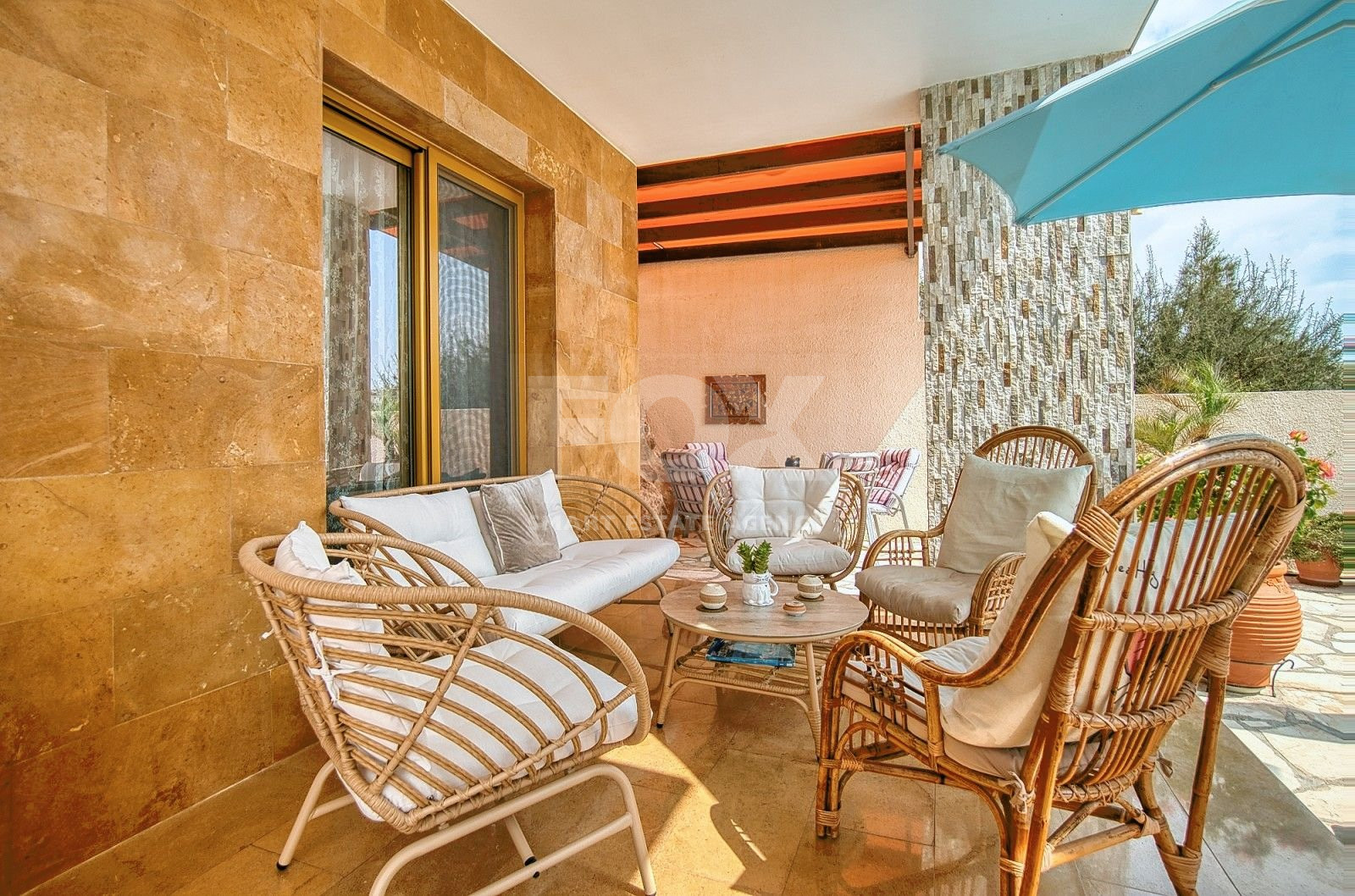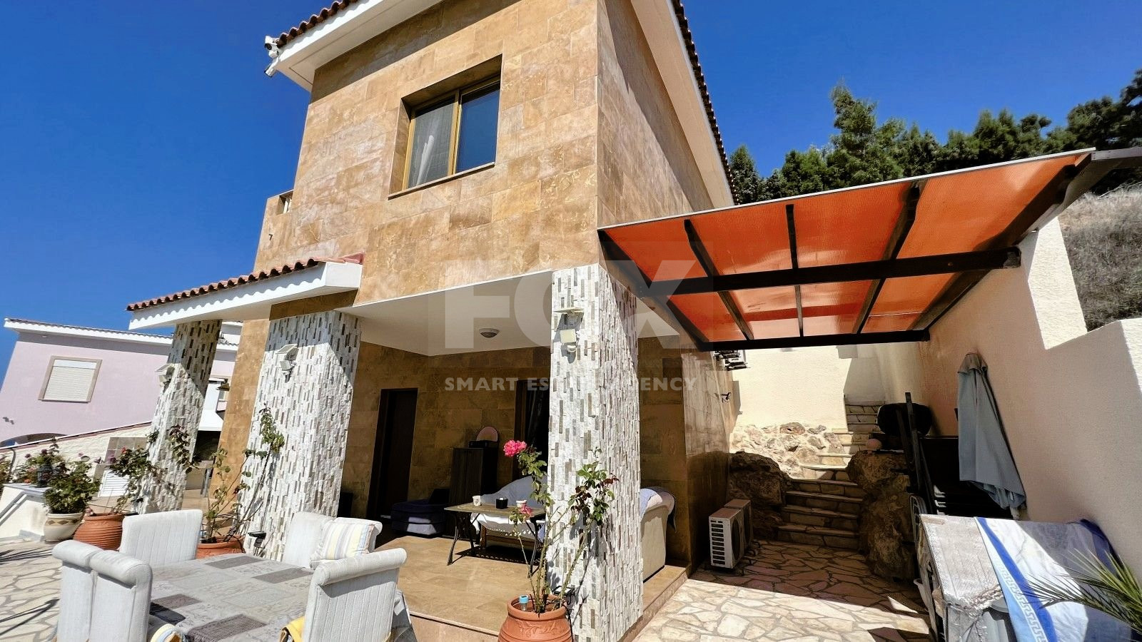 The house is built to the highest standards: marble floors, stairs and bathrooms, double glazed windows, security system (4 cameras), mosquito nets, thermal insulation, high-quality plumbing and kitchen appliances, onyx trim, crystal chandeliers, etc. There is a double sized garage and 5 kW solar panels that provide the house electricity.