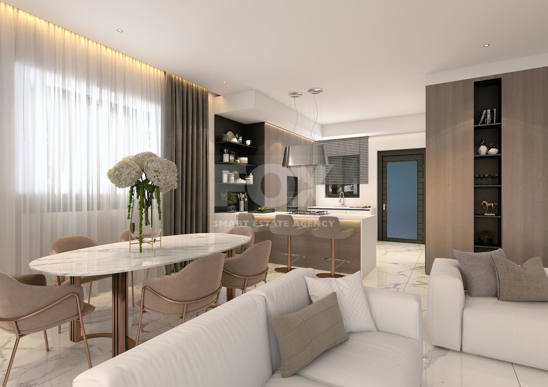 • Bright and spacious open plan living room and dining area connecting to the outside area through floor-to-ceiling windows