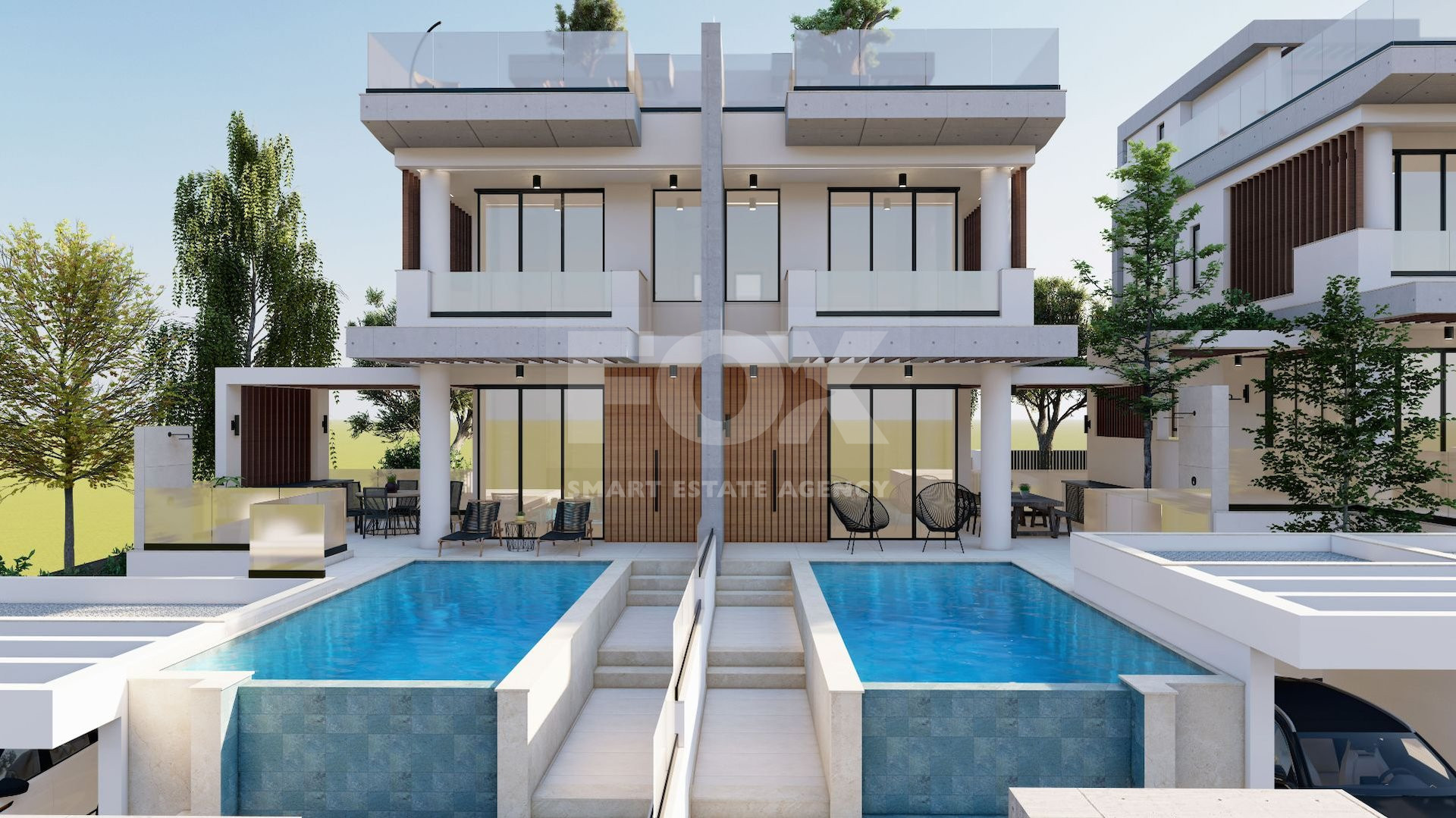 The villa combines a functional layout with modern features, private pool, panoramic roof terrace, and covered parking, making it both luxurious and practical.