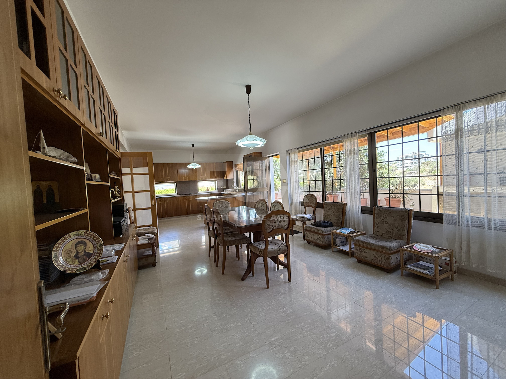 Discover this unique detached villa, offering an impressive 400sqm of internal space set on a generous 725sqm plot in a peaceful and sought-after area. Designed with both comfort and style in mind, this exceptional home combines modern living with elegant architectural features.