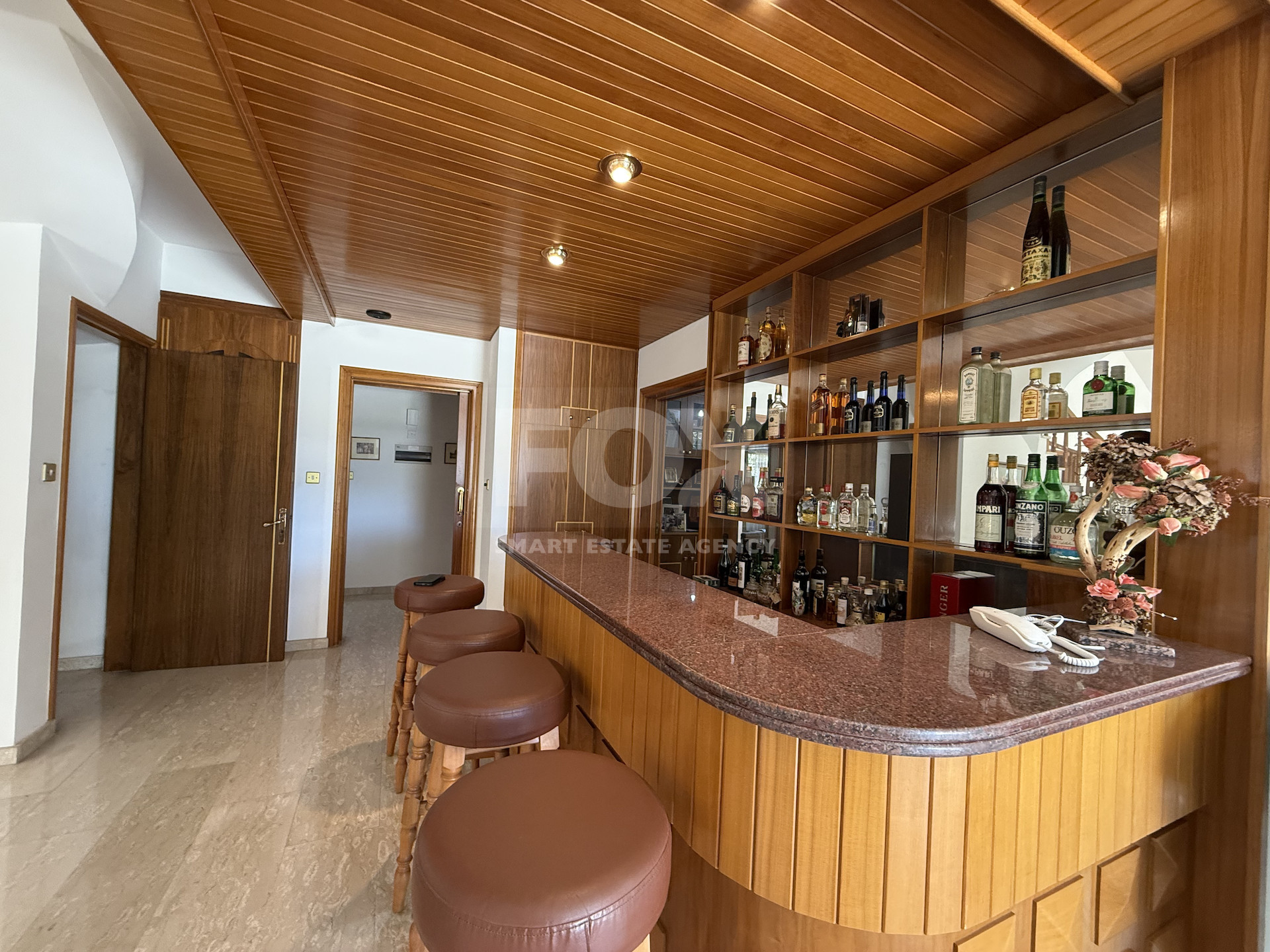 Step into a grand entrance hall with soaring high ceilings and a feature staircase that immediately sets the tone of spacious sophistication. The ground floor boasts a versatile room that can serve as a guest bedroom or private library, alongside a stylish bar area, perfect for entertaining.