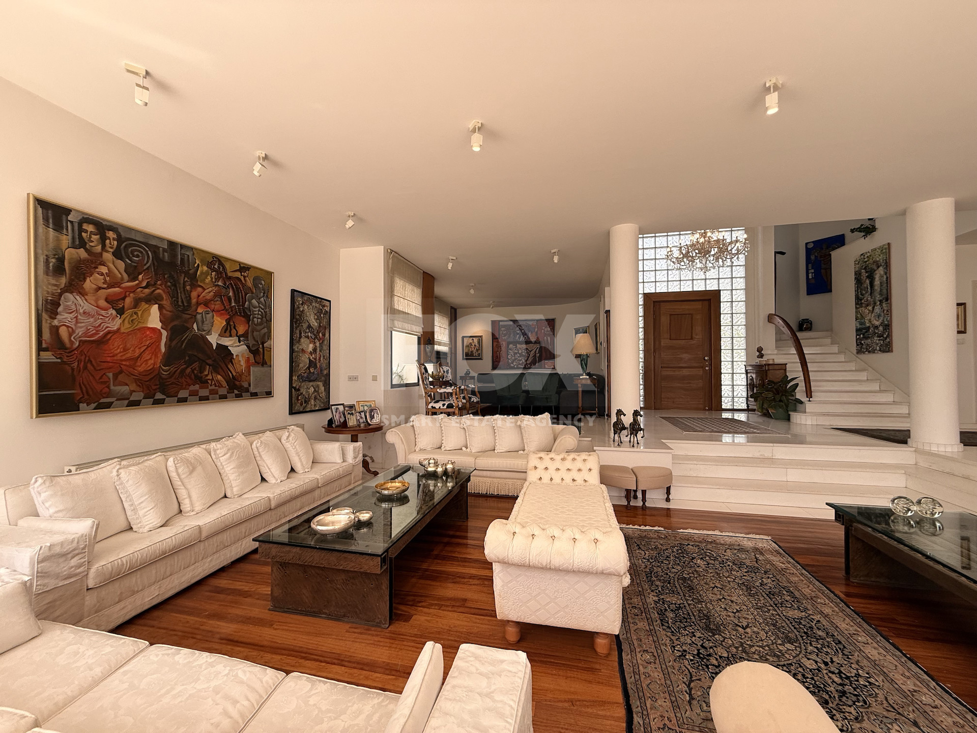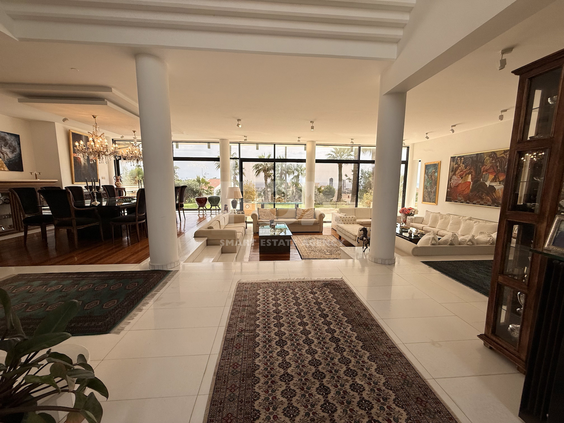Accessed via an electric drive-in entrance, the home immediately impresses with its grand presence and beautifully landscaped gardens. Designed for both comfort and entertaining, the outdoor areas feature generous terraces and a large swimming pool, complemented by a dedicated BBQ space—perfect for hosting and enjoying the Mediterranean lifestyle.