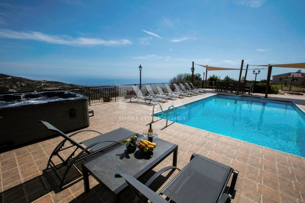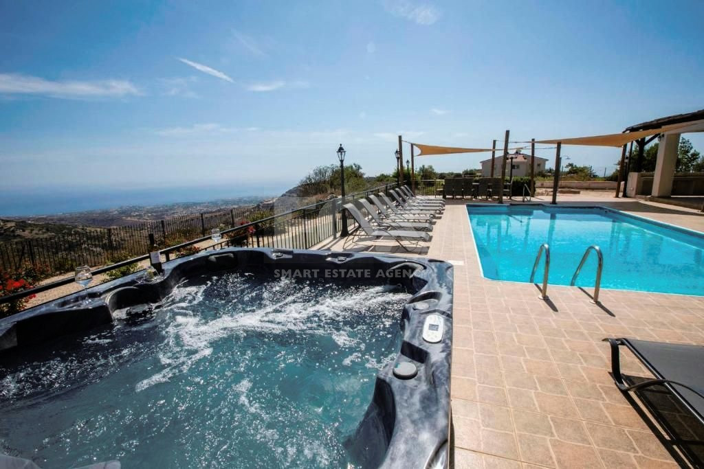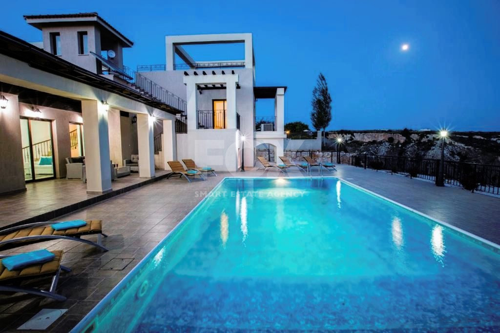 Discover the ultimate in Luxury living with a nestled in the peaceful hills of Peyia - Kathikas, offering breathtaking views of Paphos. This prestigious villa features six spacious bedrooms, including five with private bathrooms and an extra guest WC, set on an expansive 3765m2 land.