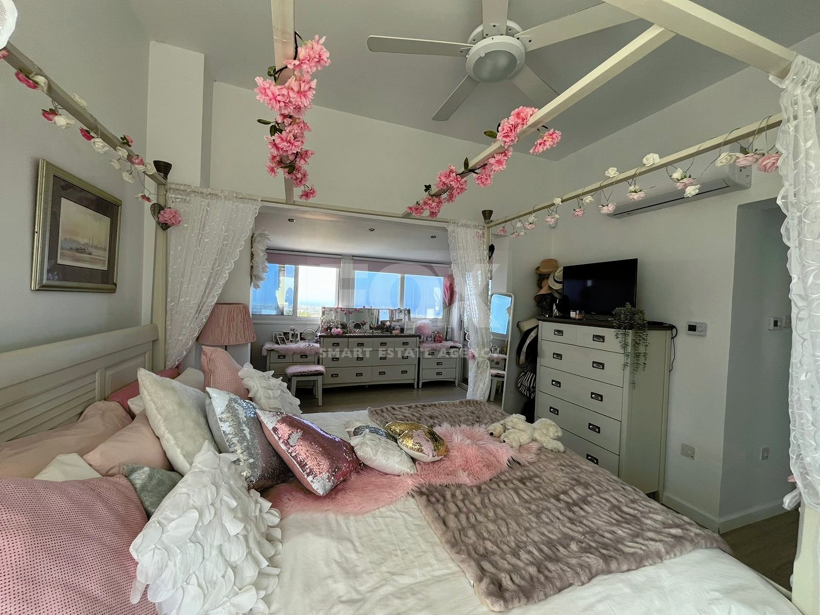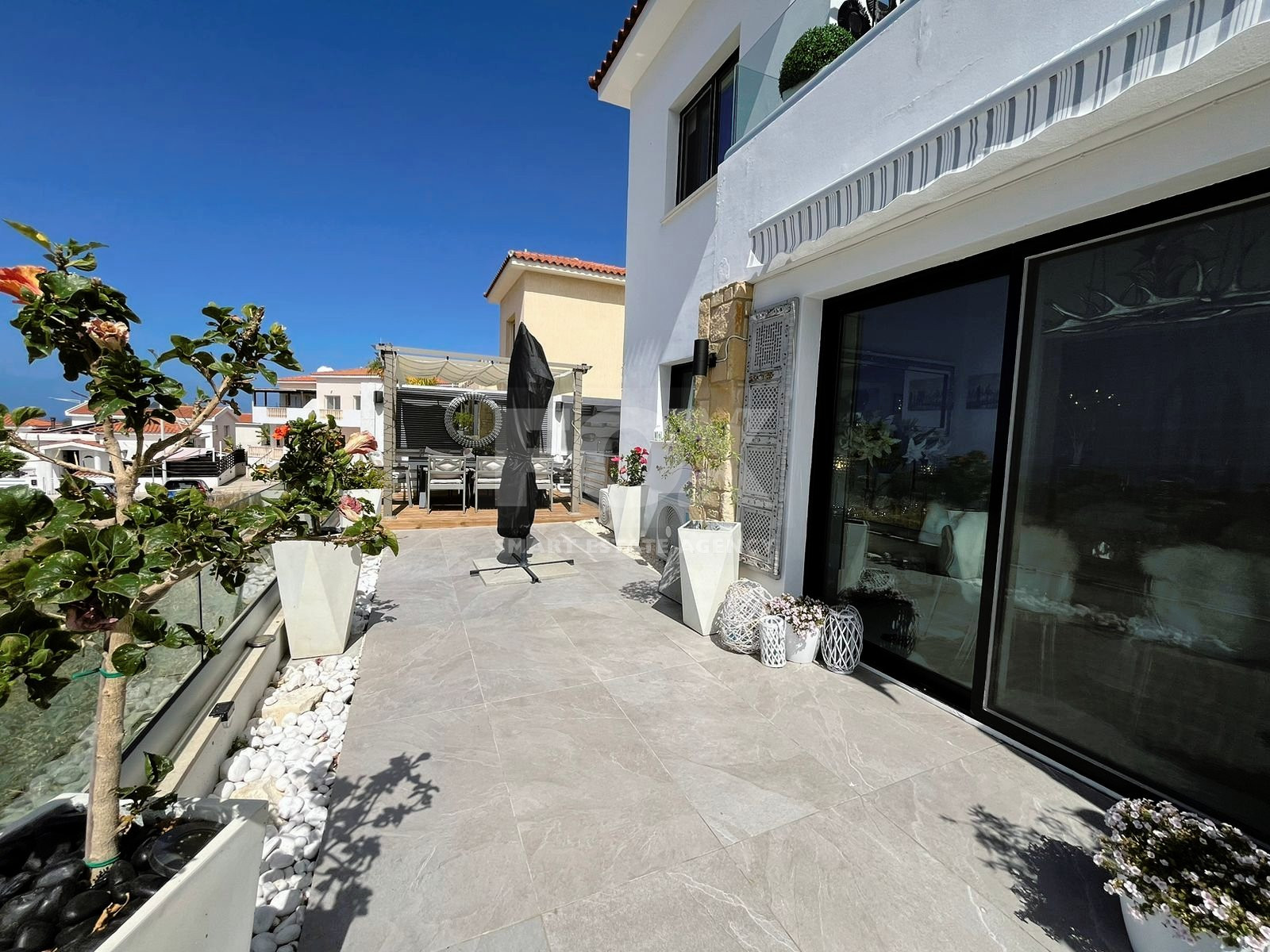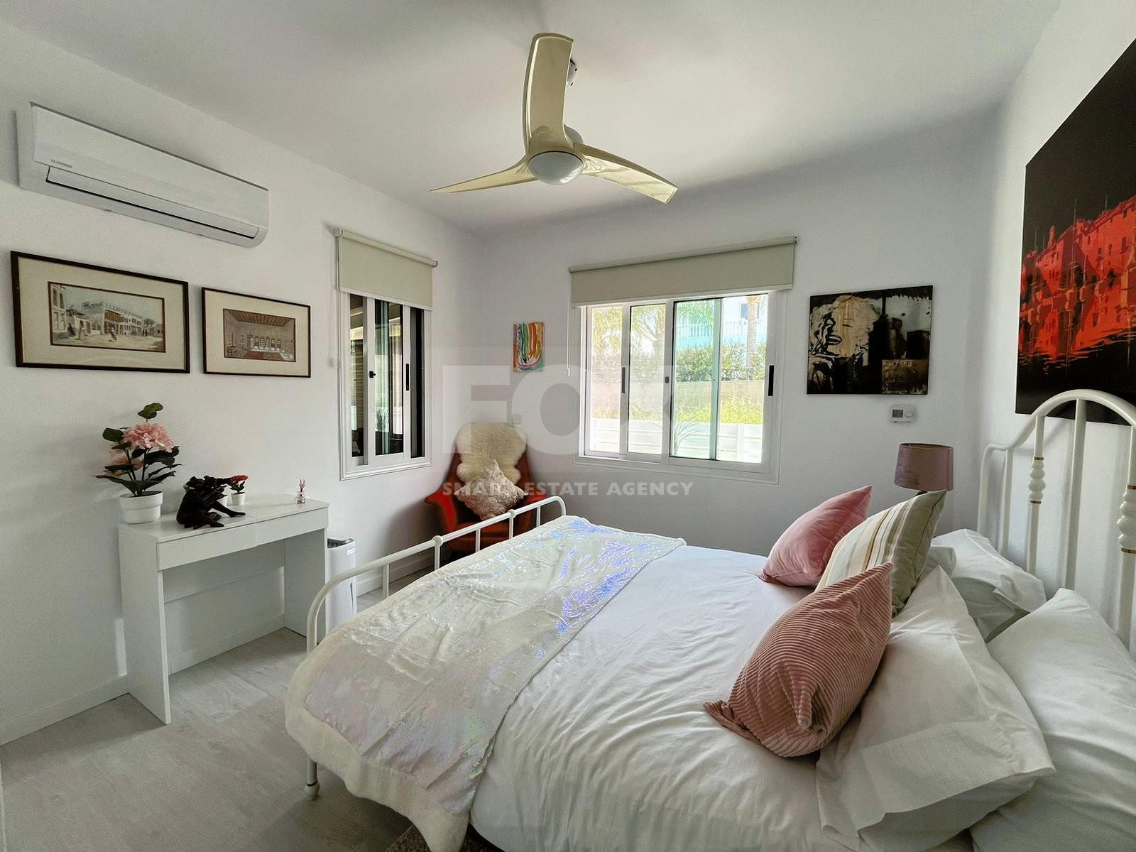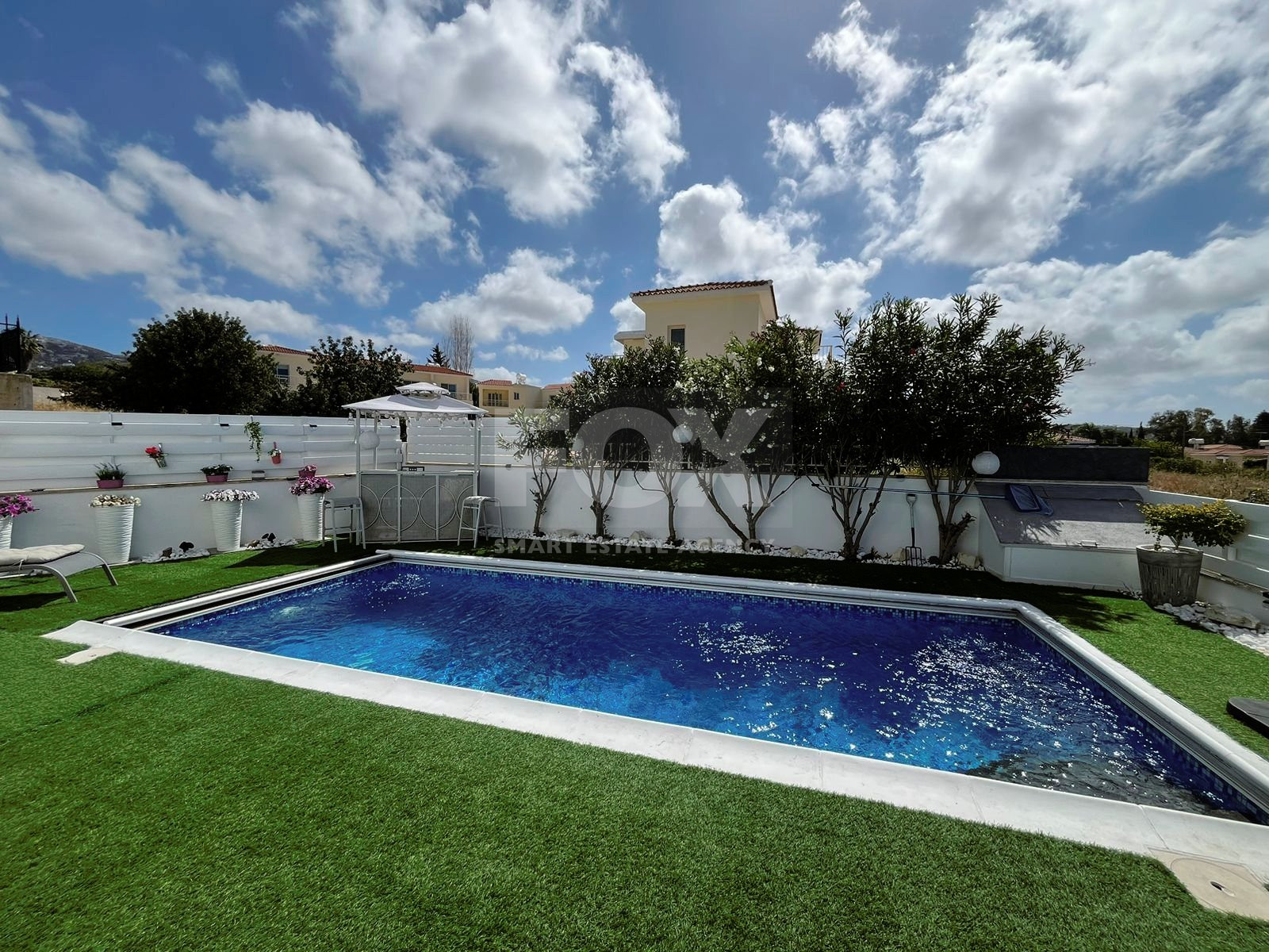 The villa has four bedrooms, three refurbished bathrooms, and an open-plan lounge, dining area, and kitchen, all renovated in the past year.