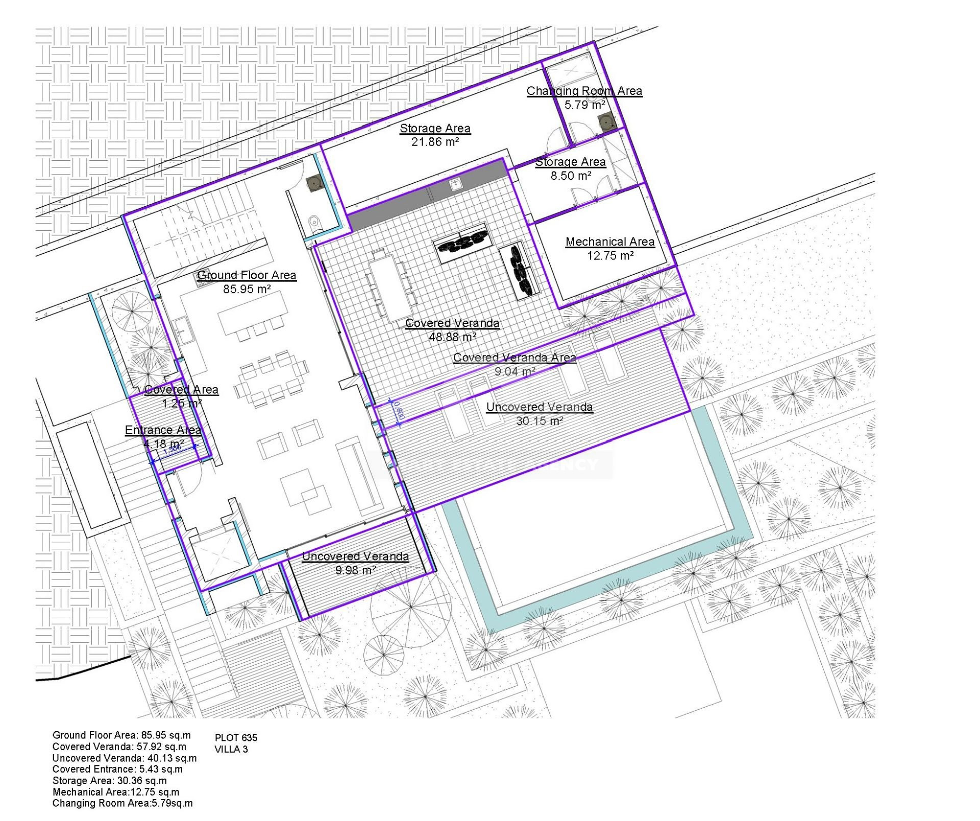 • Uncovered veranda area: 62 m²