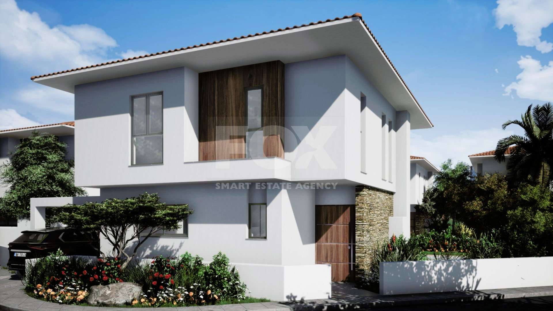 The Villa showcases a sleek, modern aesthetic with open-plan living spaces and kitchens featuring elegant granite worktops. Each bedroom includes fitted wardrobes, with the master bedroom offering the convenience of en-suite facilities. Outside, a private garden provides a peaceful retreat for relaxation and outdoor enjoyment.