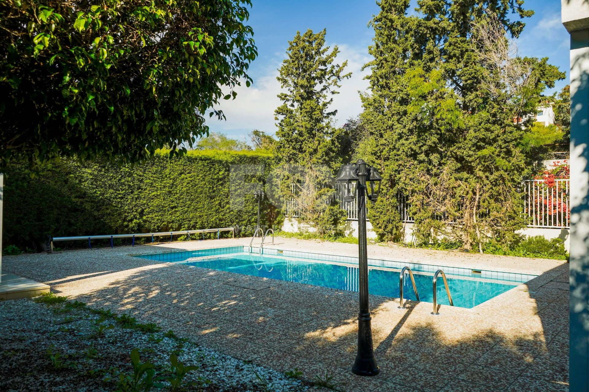 Private, mature garden with a newly renovated outdoor pool and pergola.