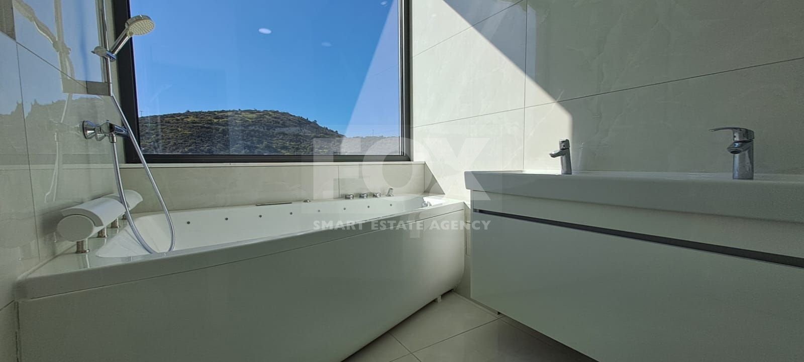 A luxurious four bedroom plus one, Villa in the prestigious Agios Tychonas Hills is available fully furnished. Spanning three floors, this exquisite property includes an elevator, a garage for three cars with a turntable, and additional parking for two vehicles.