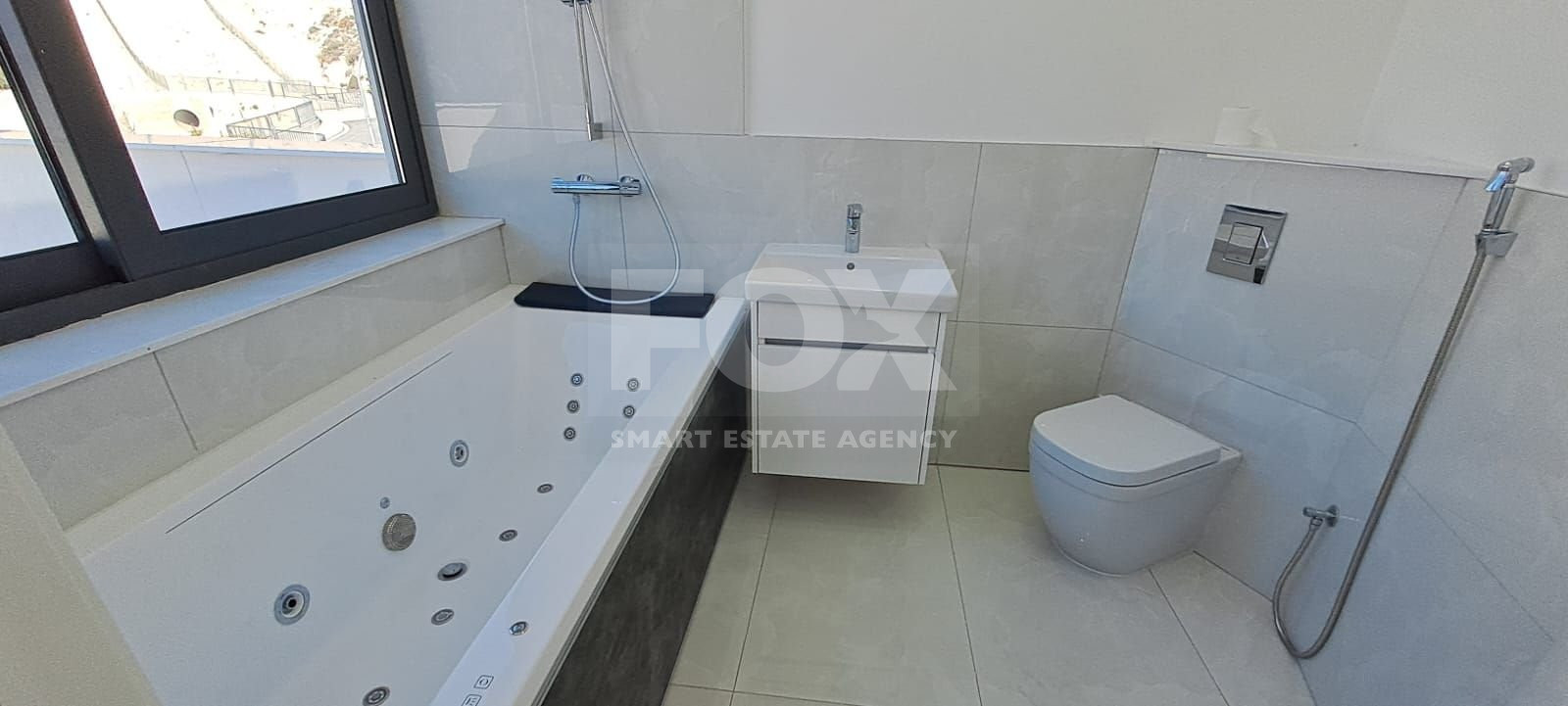 The villa also features a two-sided fireplace overlooking the outdoor Jacuzzi, a wine cellar/safe room, and a total of six bathrooms (two with Jacuzzis), plus an outdoor shower by the pool. Premium plumbing fixtures by Hans Grohe and Villeroy & Boch enhance the luxurious feel.