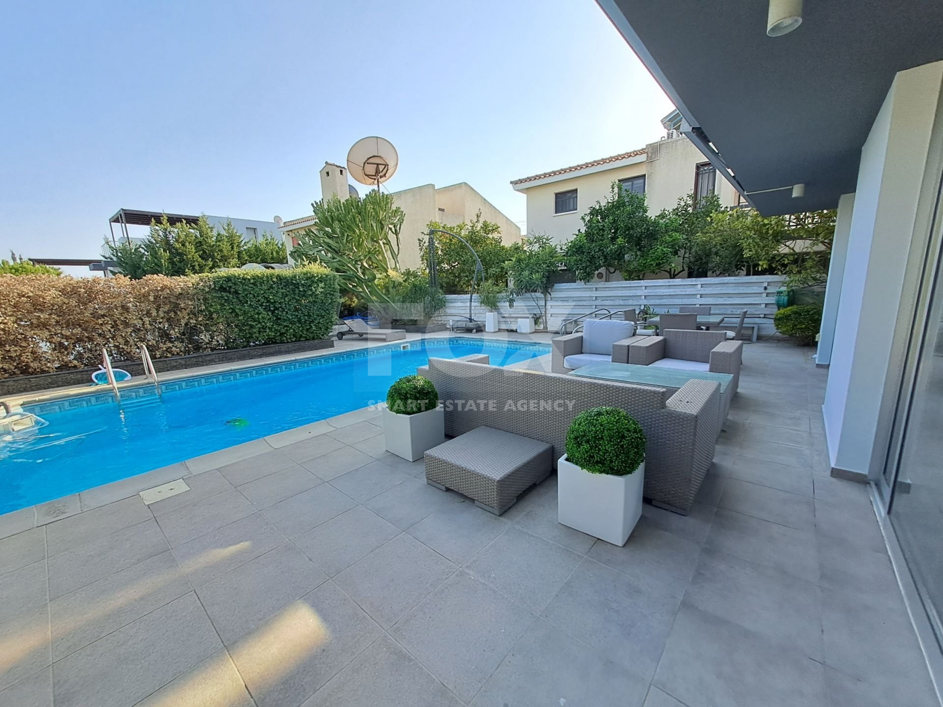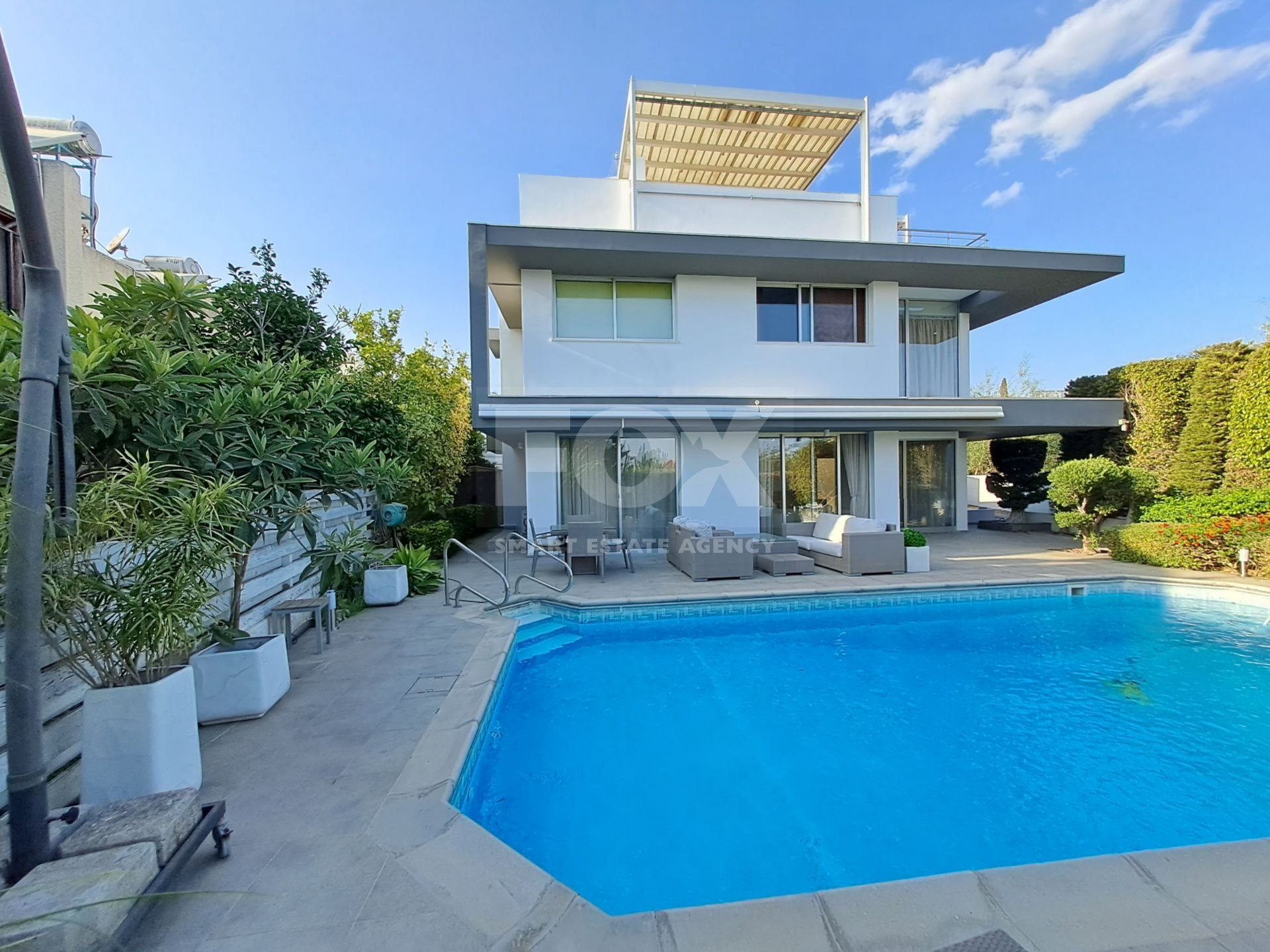An exceptional four bedroom property located on the seafront of Limassol. This charming residence boasts beautiful sea views from the Roof Garden, a private swimming pool and mature garden. The house has a lovely inside open plan area with guest WC and access to the outdoor terrace with pool. The first level has three spacious bedrooms, the master has en-suite shower and a family bathroom is shared by the second and third bedrooms. The basement area has a cinema room, fourth bedroom with en-suite shower and sauna. A fabulous roof garden enjoys a beautiful outdoor seating area with barbecue and amazing views. Easy access to the seafront road, the highway and just a few metres to the Sea. A truly marvellous seafront property which has to be seen to be fully appreciated. Please call for further information and a viewing.