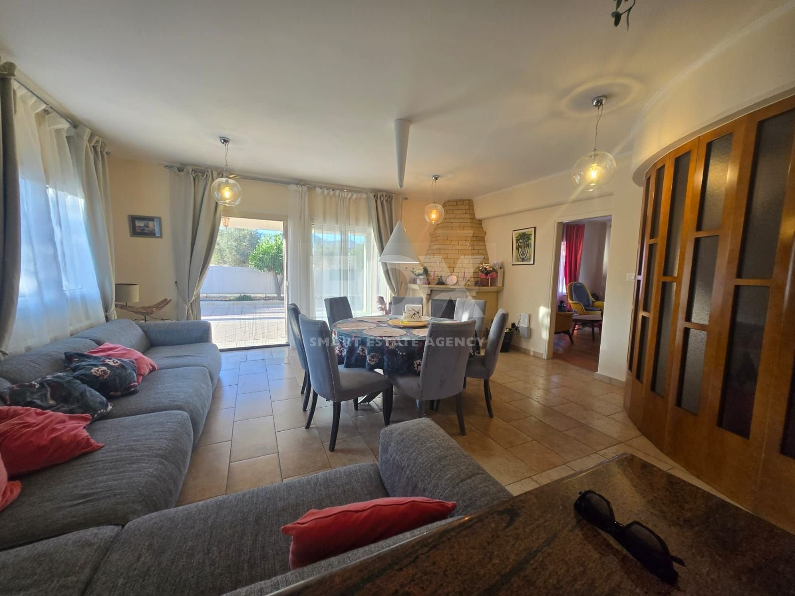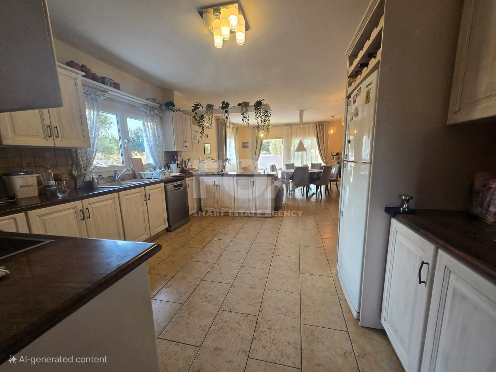 Nestled on a serene country road in Pyrgos, this extraordinary five-bedroom villa offers the perfect blend of countryside charm and coastal convenience—just 10 minutes from the seafront.