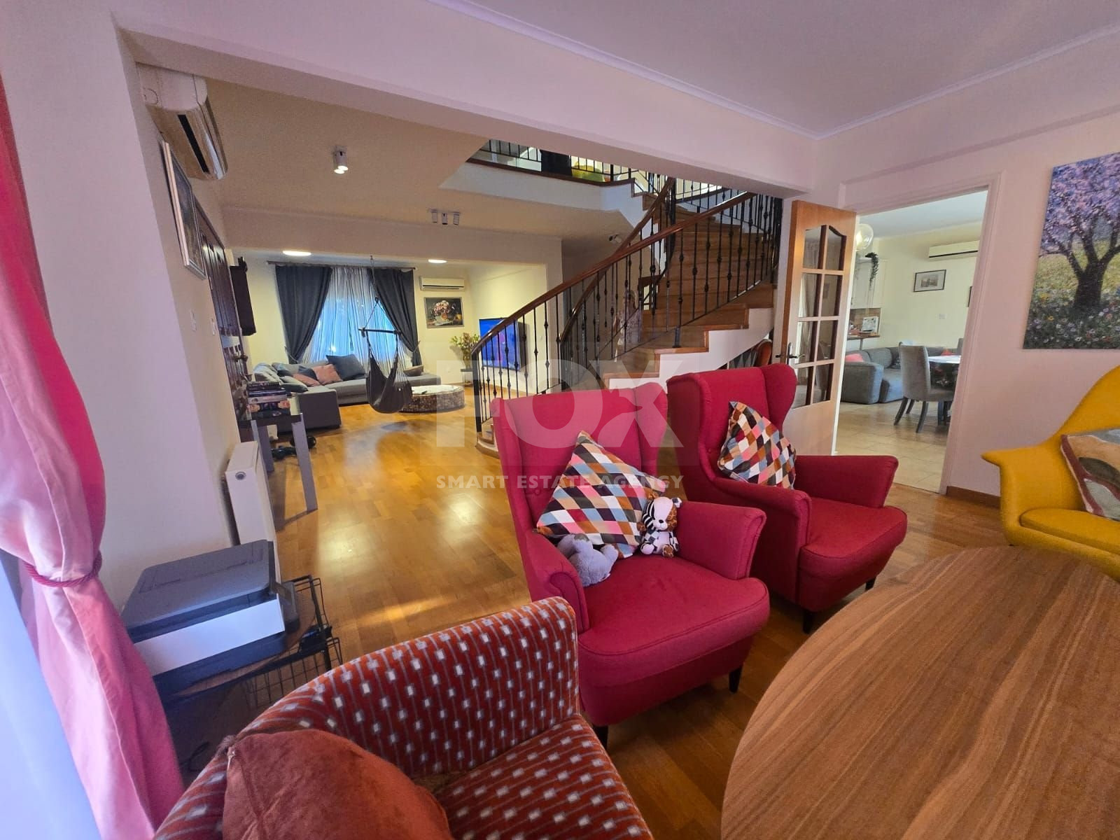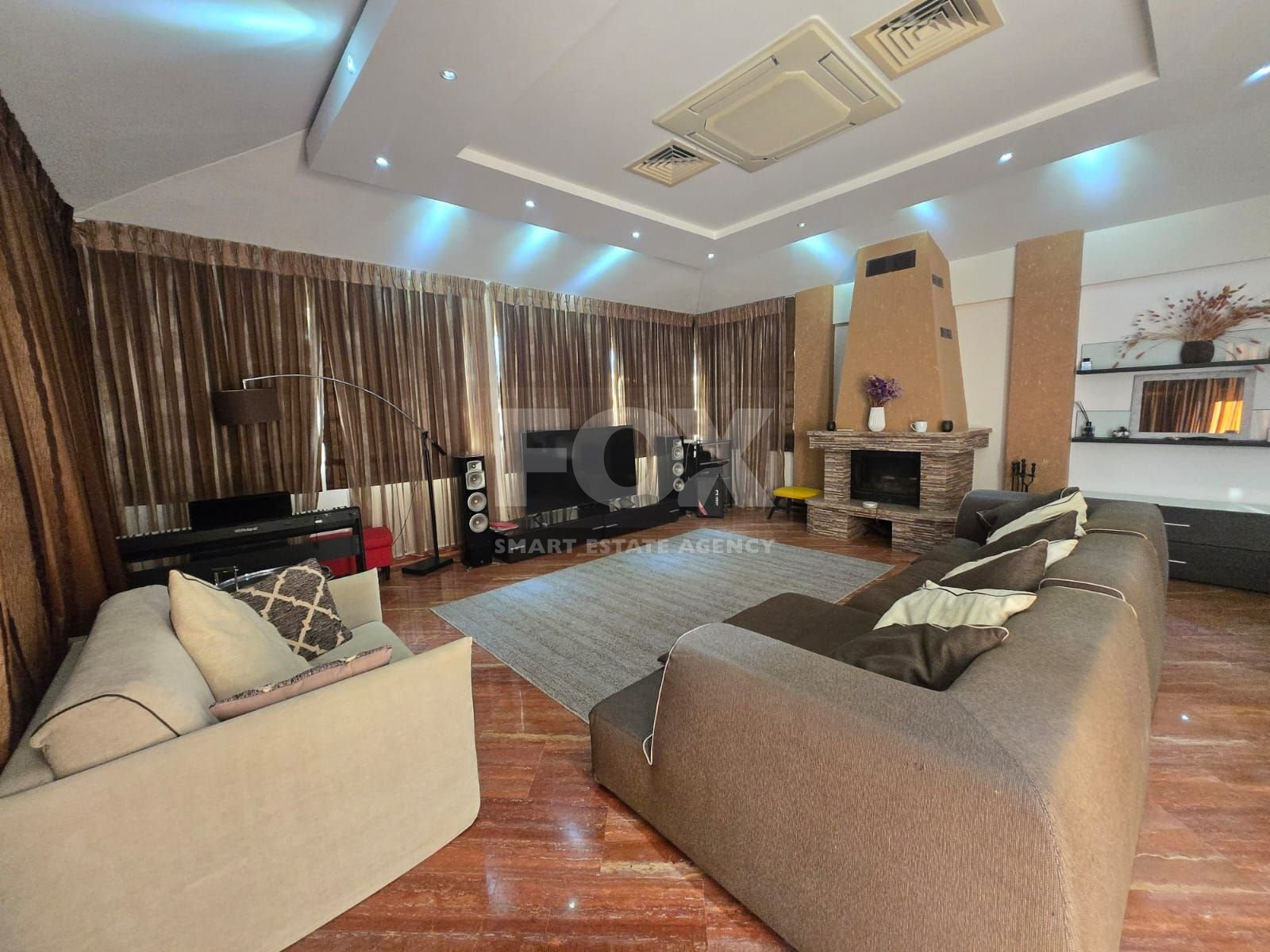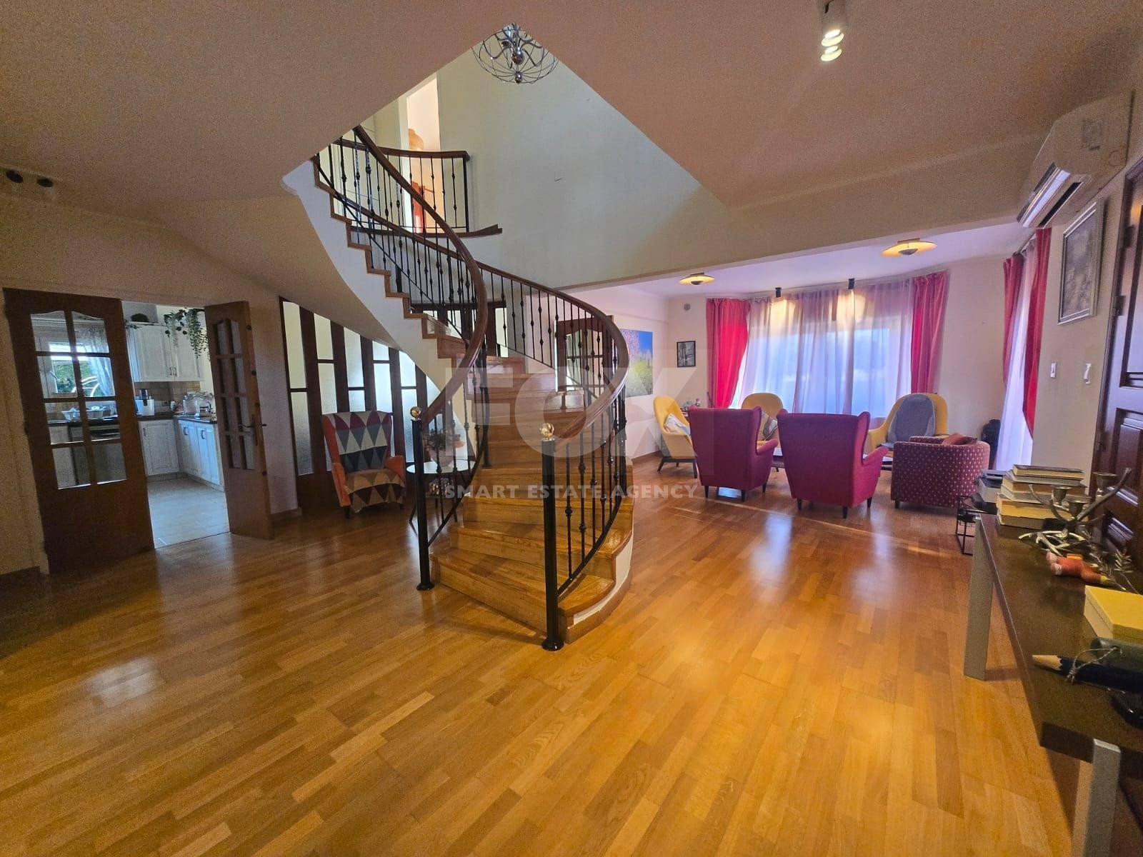 Set on a vast plot with a long, elegant driveway leading through beautifully mature gardens, this property provides both privacy and grandeur. Inside, the villa boasts a well-thought-out, spacious layout, including a formal sitting area, an elegant dining room that flows seamlessly into a family room, and an open-plan kitchen ideal for modern living.