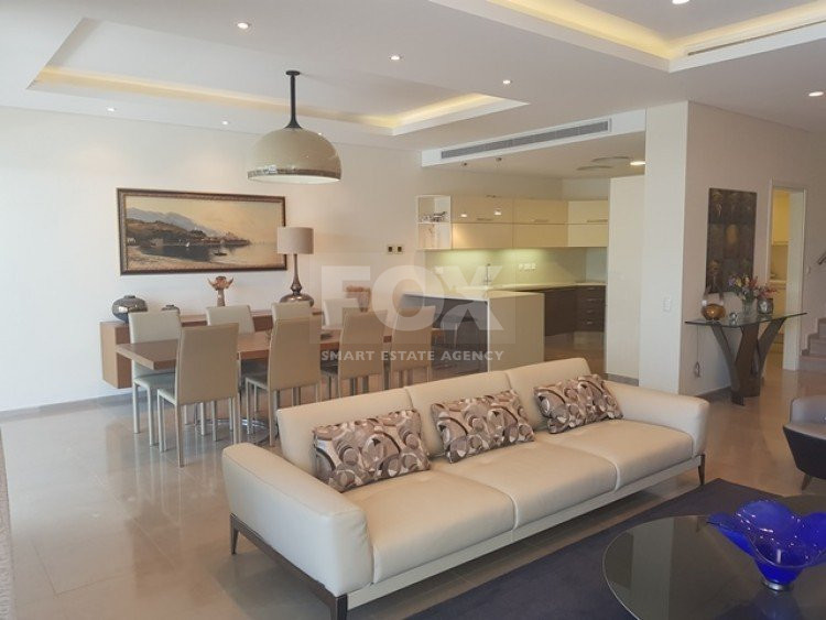 Luxury-spacious 3+1 bedroom, ground floor-duplex apartment, located in Germasogeia area, in a building with private, security gate, down from the main road of tourist area, walking distance, only a minute from the beach. This ground floor duplex apartment with internal area of 224sqm and 200sqm verandas, only 3 years old, with high quality materials, fully furnished is now on market for sale for 4.4 millions. The apartment has a huge living room and dinning area and a semi separate kitchen in the ground floor, with extra small separate kitchen as well, a guest wc, and one bedroom also wn suit with toilet and its own bathroom. On the floor there are another two bedrooms, en suit with toilet and bathrooms as well and also there is space for another extra 4th bedroom which easily can separate anytime that someone want to do it. As you can see from the photo the apartment is exactly in front of the common swimming pool of the building, has two big size verandas, one ground floor and one on the floor. Has granite all over the house (kitchen, toilets, floors), double glazed windows, full equip with electric appliances and fully furnished, with al that included in the price.Also the apartment has independent vrv units for hot and cold all over the place. Very close to all amenities like supermarkets, schools, bus stop, shops and clubs. Suitable for investment as it can easily rent it more than 7-8 thousands per month. Asking price 4.4 millions with no vat, including furniture and equipments.