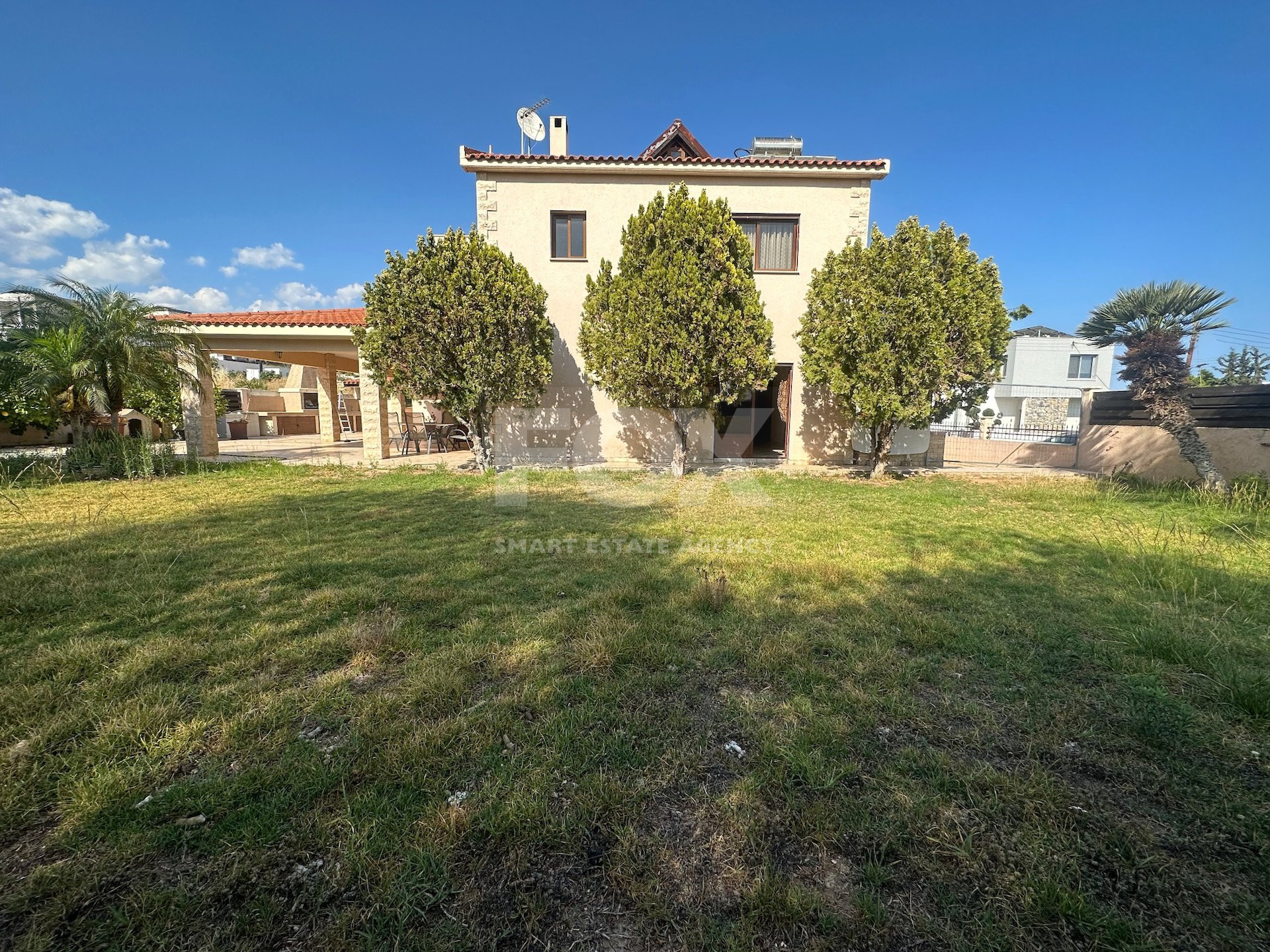 Located in a quiet residential area of Agios Athanasios, this spacious 323m² home sits on an 806m² plot, offering easy access to schools and all amenities. The property features large private gardens, a covered pergola with built-in BBQ, and an external maid’s quarters.