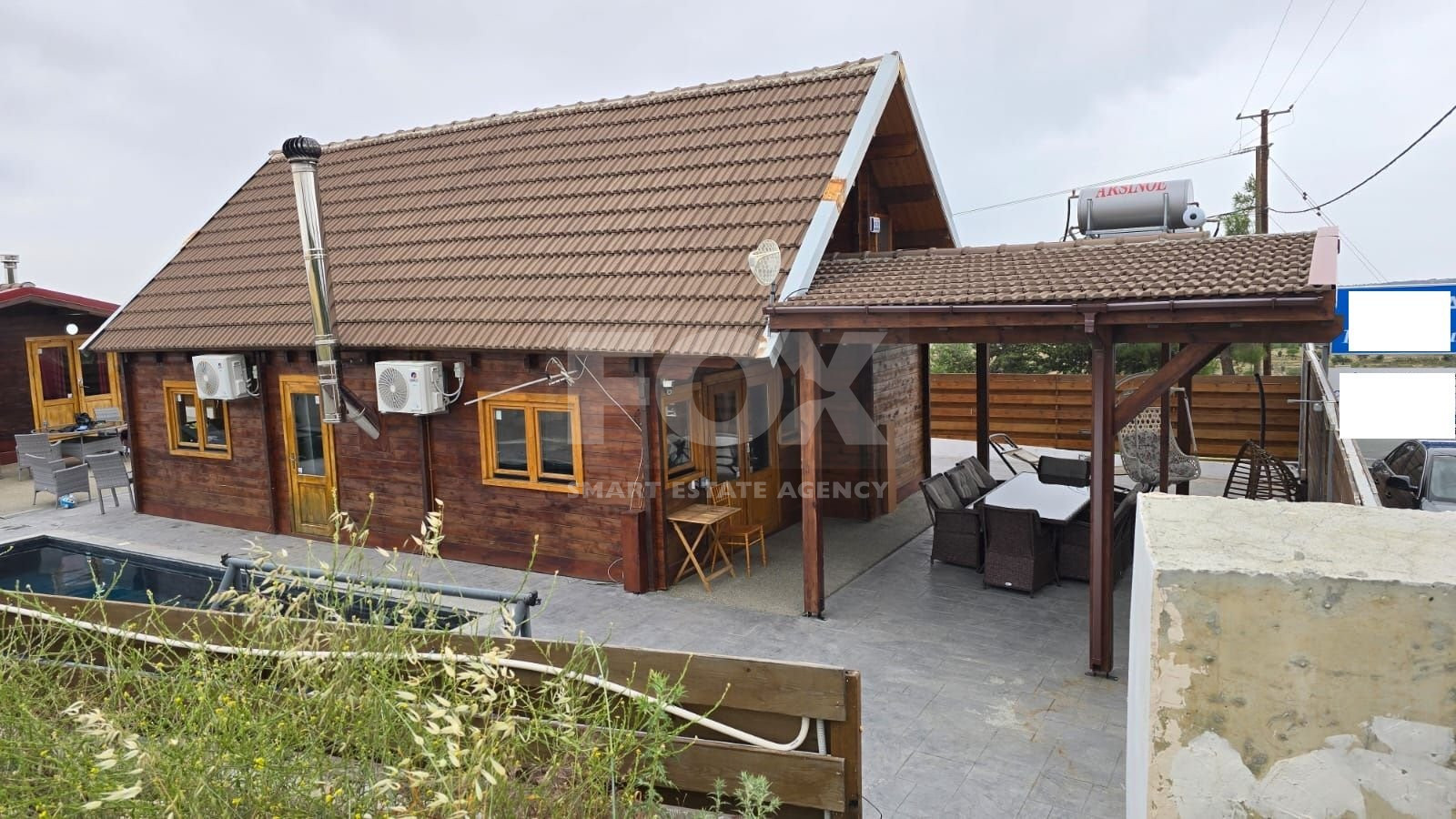 A fully operational tourist accommodation consisting of 4 independent wooden houses, with: