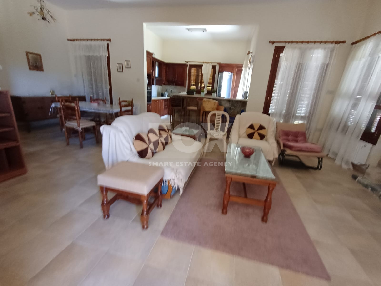 Available for rent is a spacious ground-floor house in the peaceful village of Mandria, offering 145 m² of comfortable living space. Built in 2008, this well-maintained property features two sizable bedrooms, making it ideal for couples or small families.