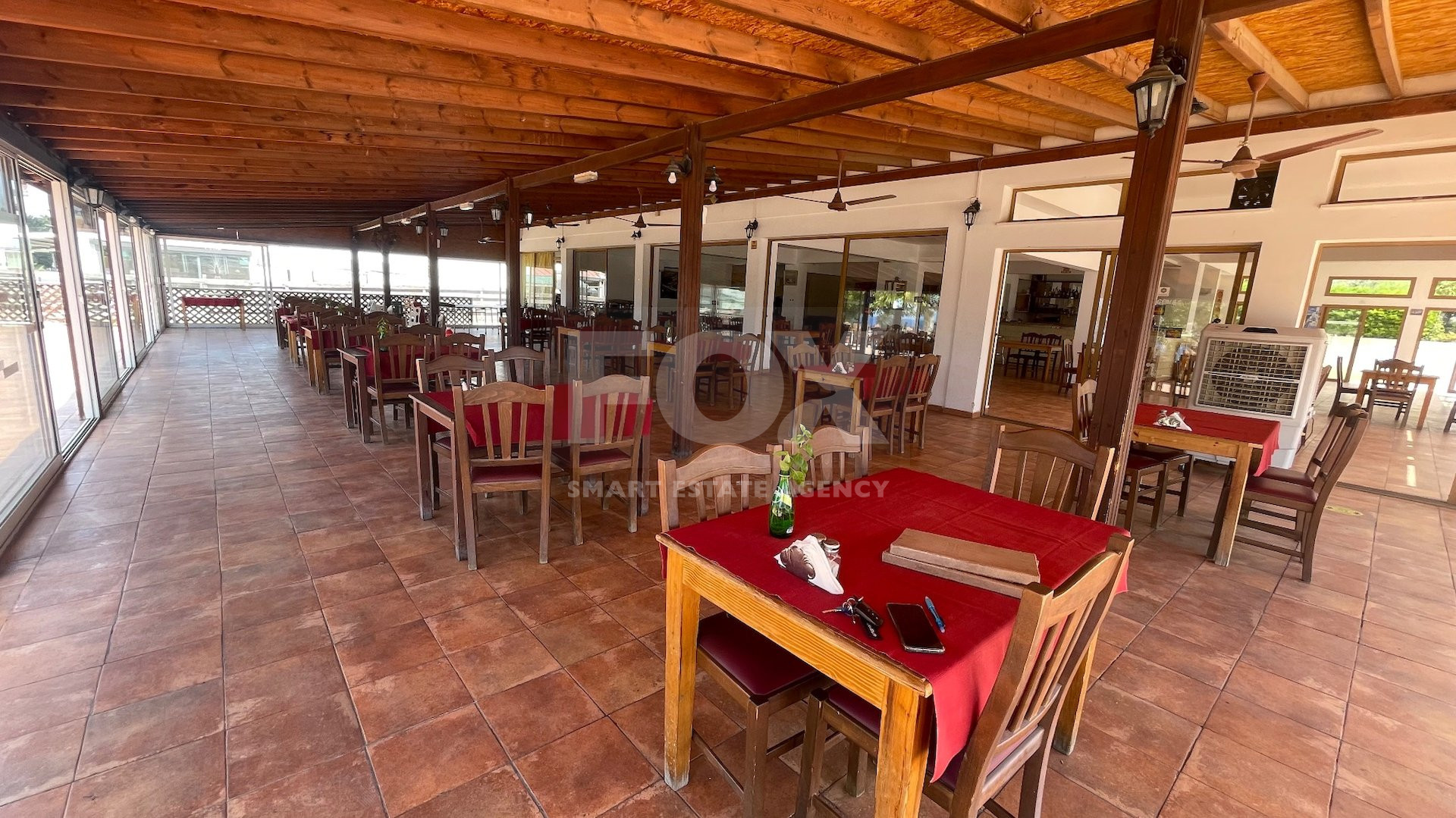 The restaurant is a well-established business with a loyal customer base, offering indoor and outdoor seating that captures breathtaking sea views.