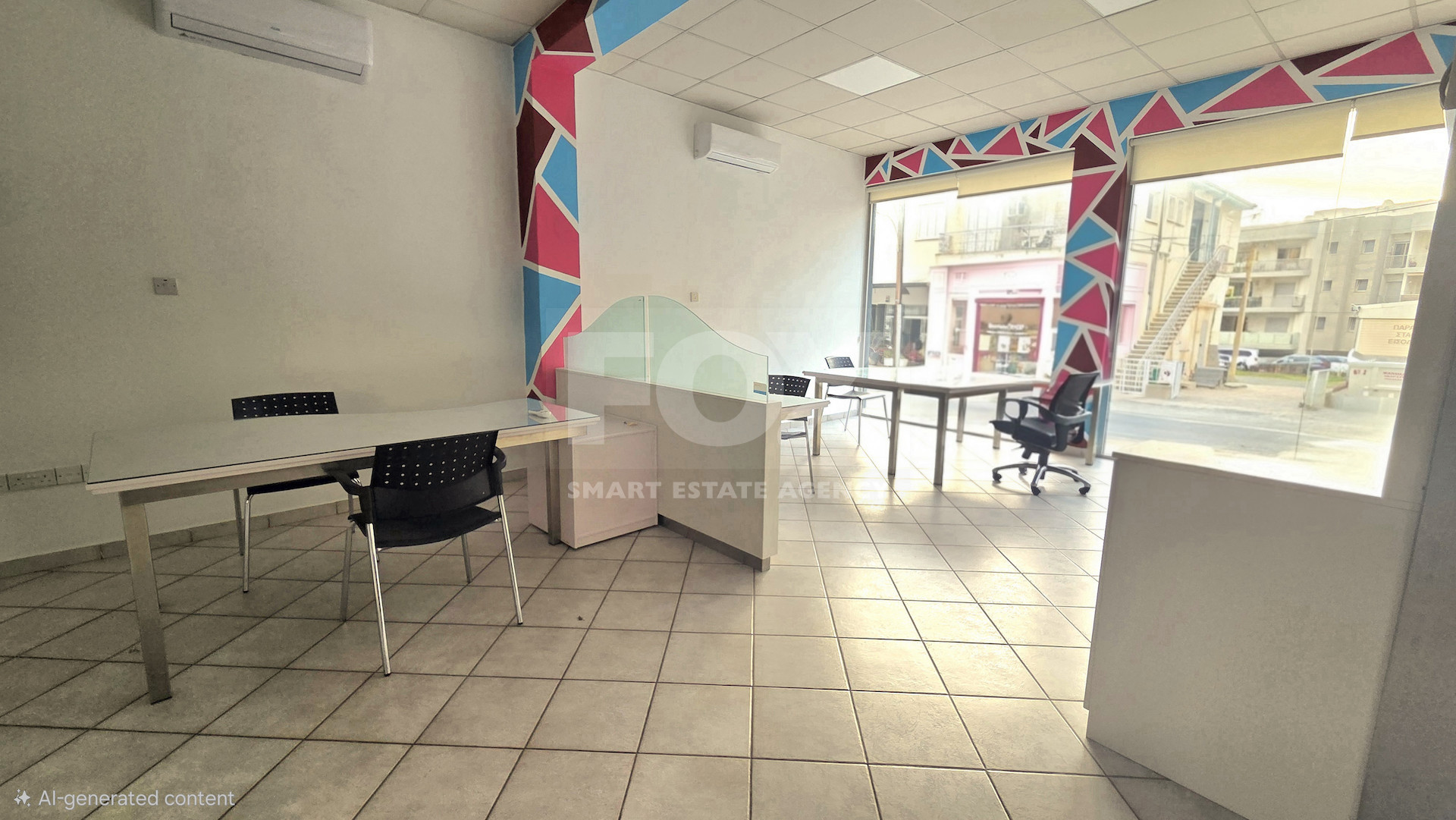 For rent: A modern, ground-floor office with 100 m2 of internal space located in the vibrant area of Agia Filaxi. This office offers a professional setting, ideal for businesses looking to establish a presence in a sought-after location. The unit features one bathroom and benefits from a contemporary layout, providing both comfort and functionality.