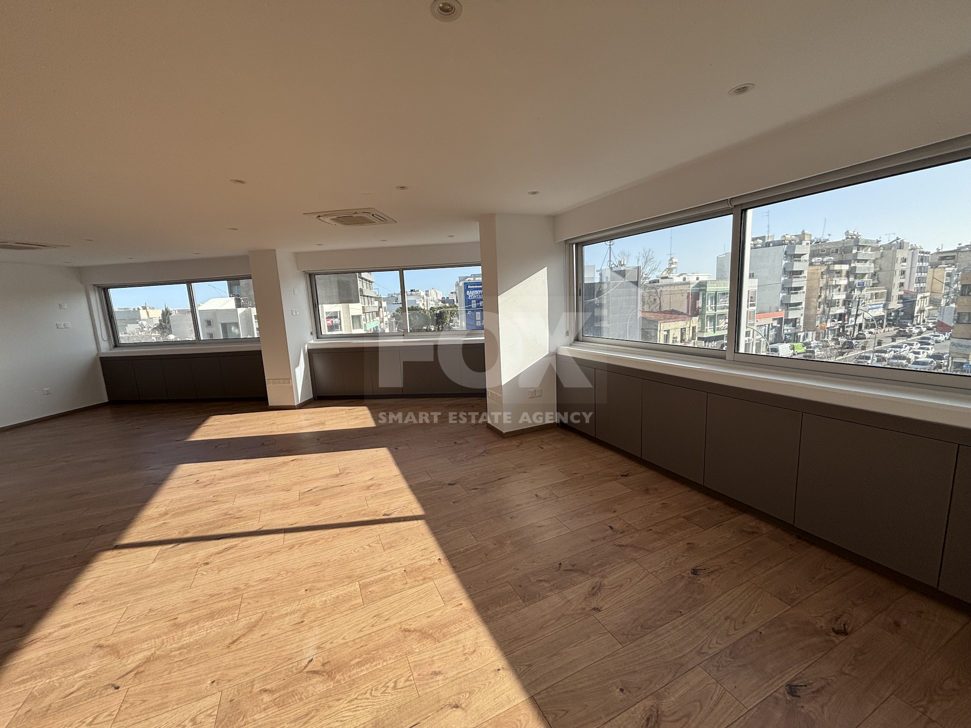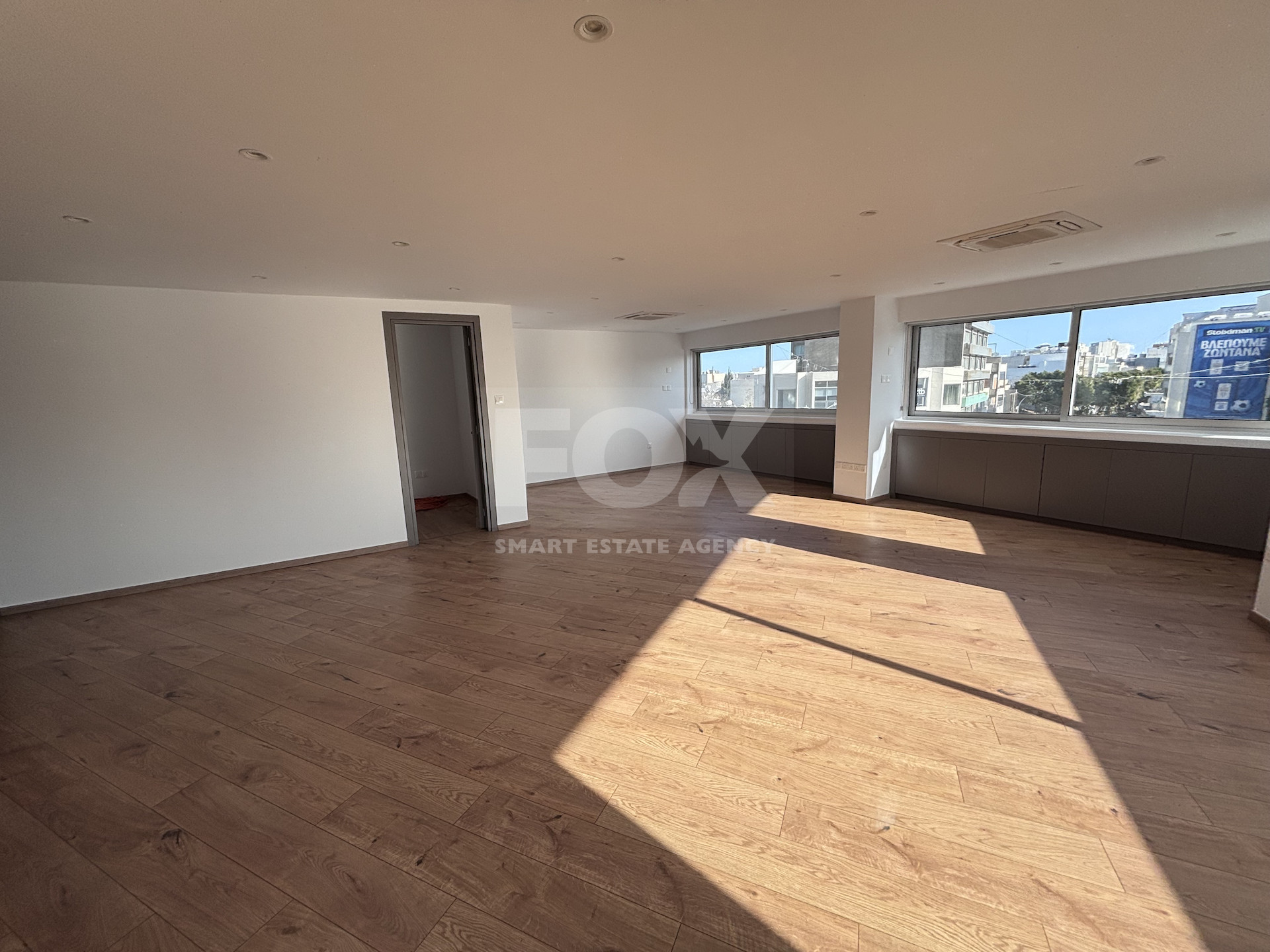 Available for rent, this well-maintained office offers 138 sqm of internal space on the third floor of a modern seven-story building with elevator access. The layout is practical and spacious, allowing flexibility for a range of business needs. Large windows ensure plenty of natural light throughout the workspace.