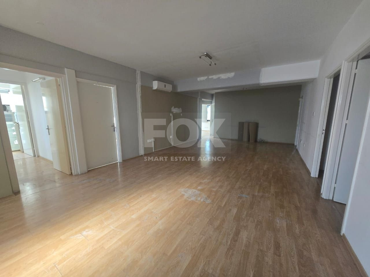Located on a prime commercial road in Chalkoutsa, this 220m² office space offers a spacious open-plan area, seven private offices, a kitchenette and two WC. The property is easily accessible via all major routes and is conveniently close to key amenities. It also includes two covered parking spaces and a storage room. Please call to schedule a viewing.
