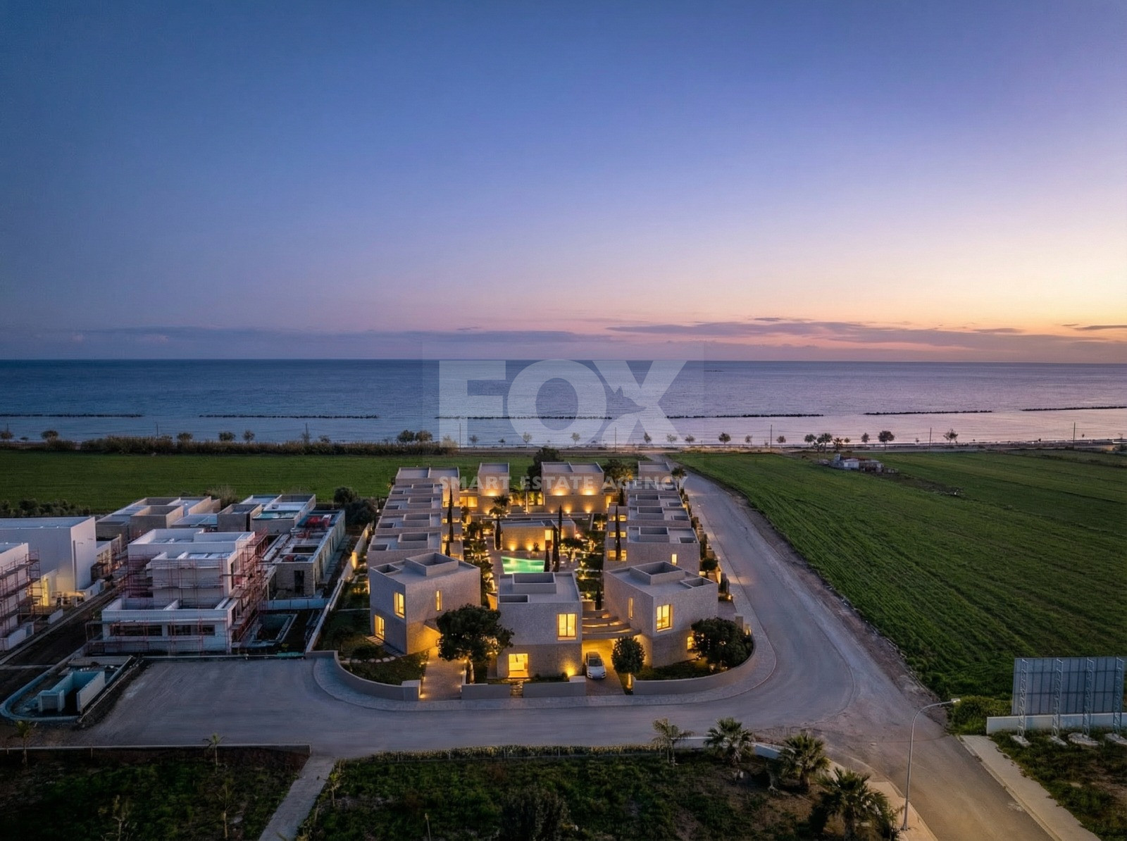 A luxury beachfront villa development located near a prime coastal area in Paphos, Cyprus. The development features modern, high-end residences designed for contemporary Mediterranean living.
