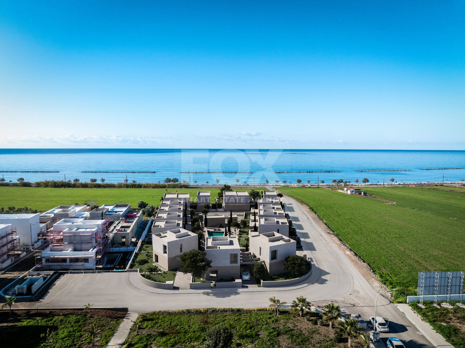 A luxury beachfront villa development located near a prime coastal area in Paphos, Cyprus. The development features modern, high-end residences designed for contemporary Mediterranean living.