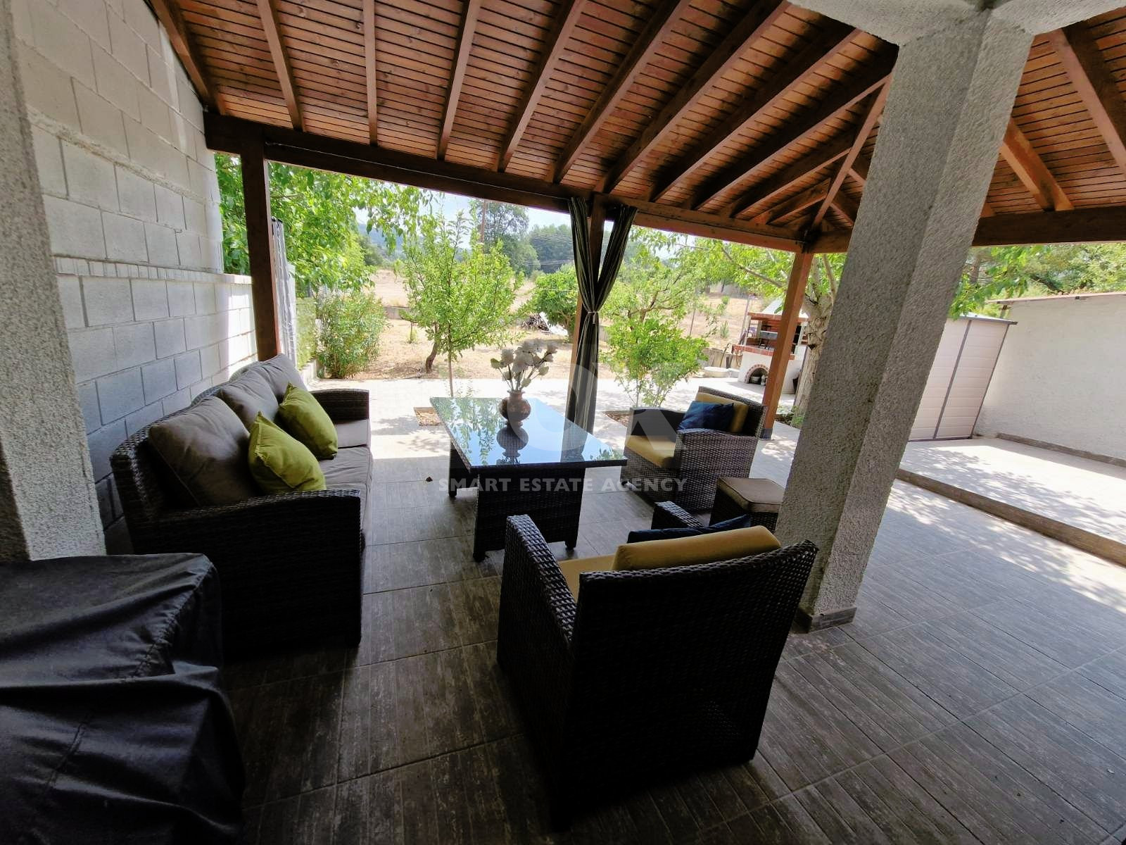 This beautiful three-bedroom house in Mandria village, Limassol, offers a spacious and comfortable living experience. Located in a quiet residential area, it is close to all amenities and provides easy access to the main road, just a 35-minute drive from Limassol. The house features a big garden and access to a common swimming pool. Inside, you'll find a large and comfortable living and dining room with an ergonomic fireplace, an open-plan kitchen equipped with all electrical appliances, and a guest toilet. The three bedrooms are of good size, with the master bedroom including a bathroom. The property comes fully furnished and air-conditioned, ensuring a pleasant living environment. Outside, the house boasts a large garden, two covered parking spaces, a pergola, a BBQ area, and access to a common swimming pool. Contact us for more information and to arrange a viewing.